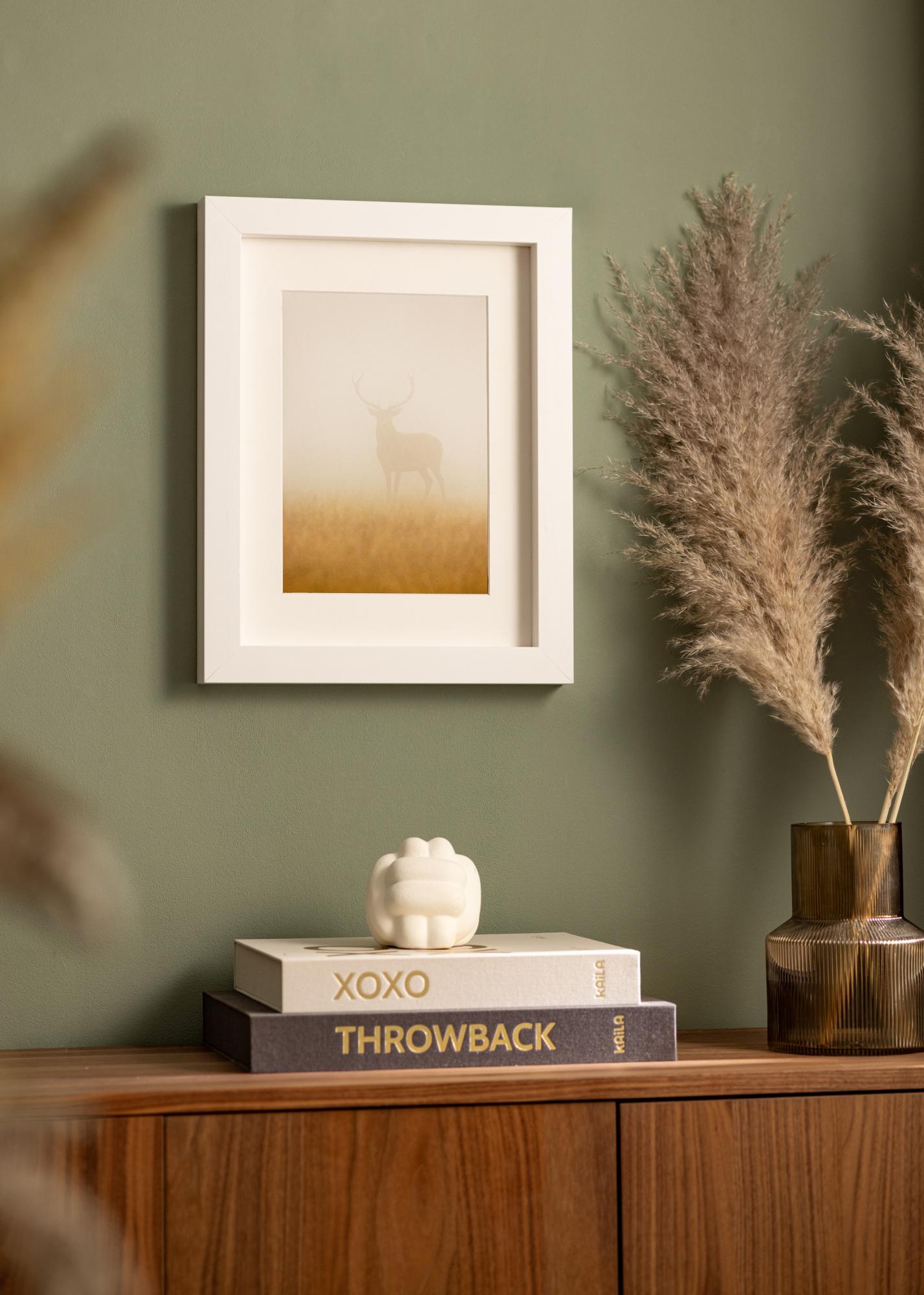Fururam fabricado na Finlândia, pintado de branco diretamente na madeira para uma sensação de madeira genuína. "Boxholm Vit" tem uma profundidade de 43 mm, perfeito quando quer emoldurar diferentes tipos de objetos. Ou apenas se quer que o seu quadro se destaque um pouco da parede. O quadro também inclui uma lista de distância que permite que escolha entre duas profundidades de enquadramento.