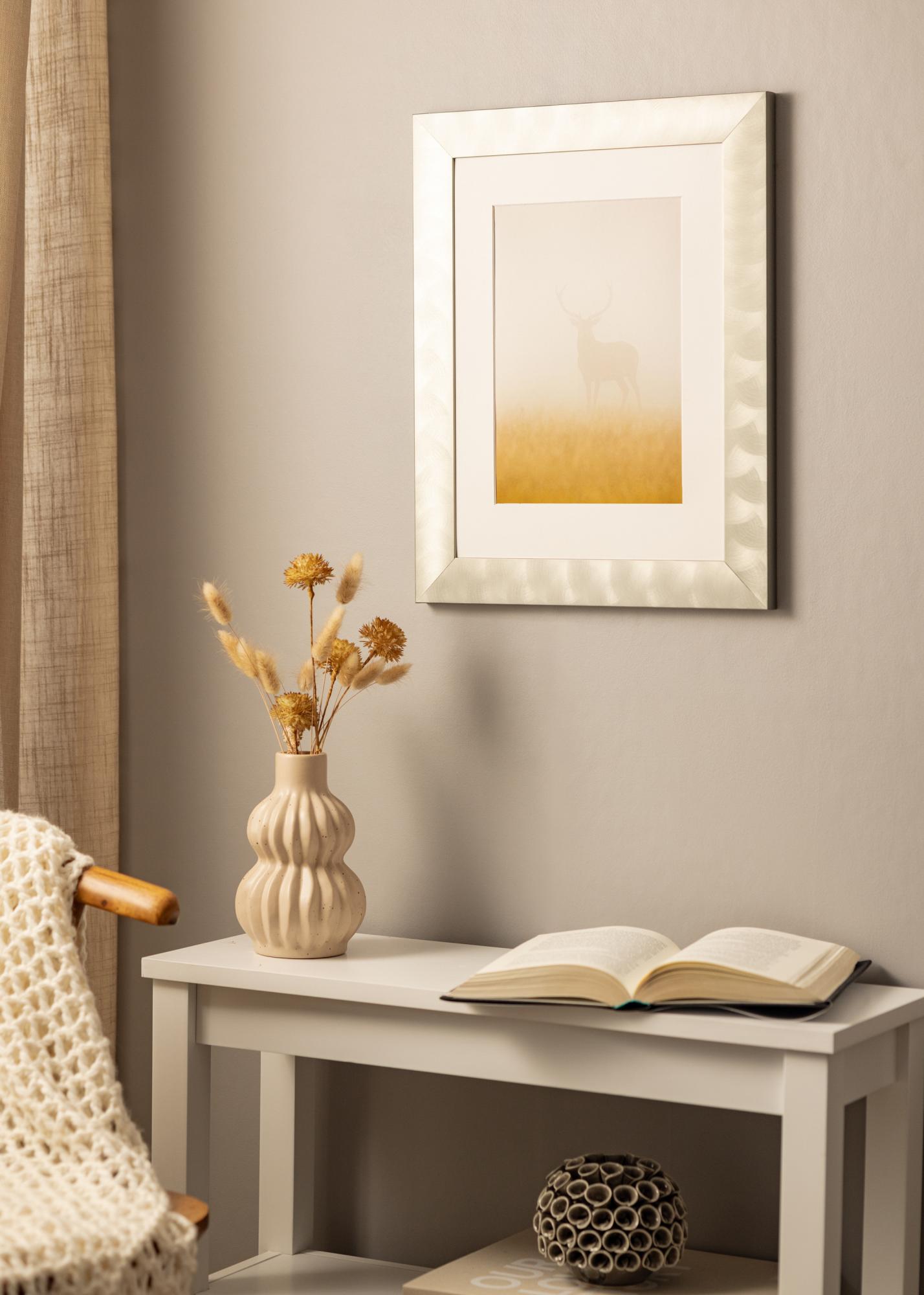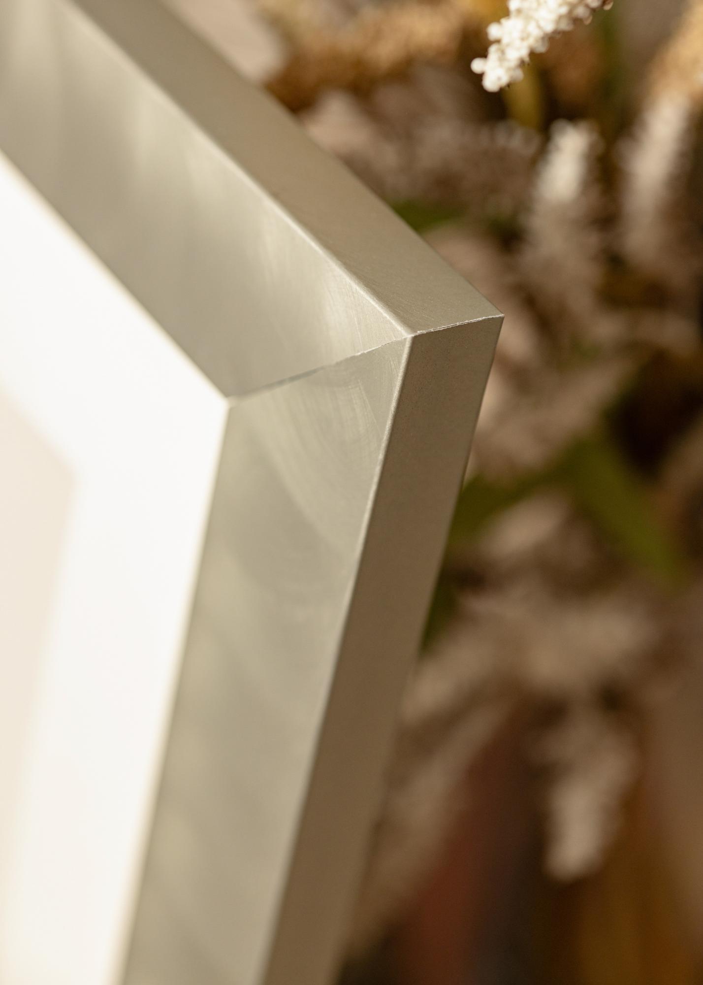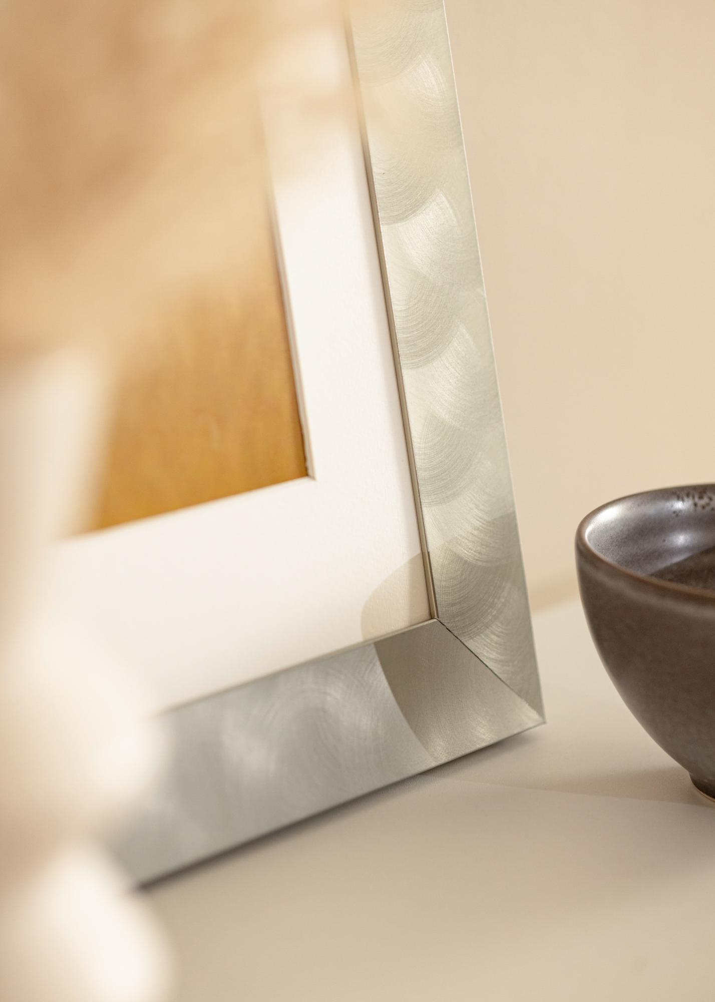 Moldura larga feita de alumínio de alta qualidade, com uma aparência de aço-claro, que se encaixa bem tanto em estilos de decoração minimalistas quanto mistos. A moldura é adequada para emoldurar fotografias em preto e branco, pósteres com citações e impressões gráficas. Pendure o quadro junto com mais motivos correspondentes ou combine molduras de diferentes tamanhos para criar uma galeria de parede no sala de estar e obter um ponto focal diferente da TV.