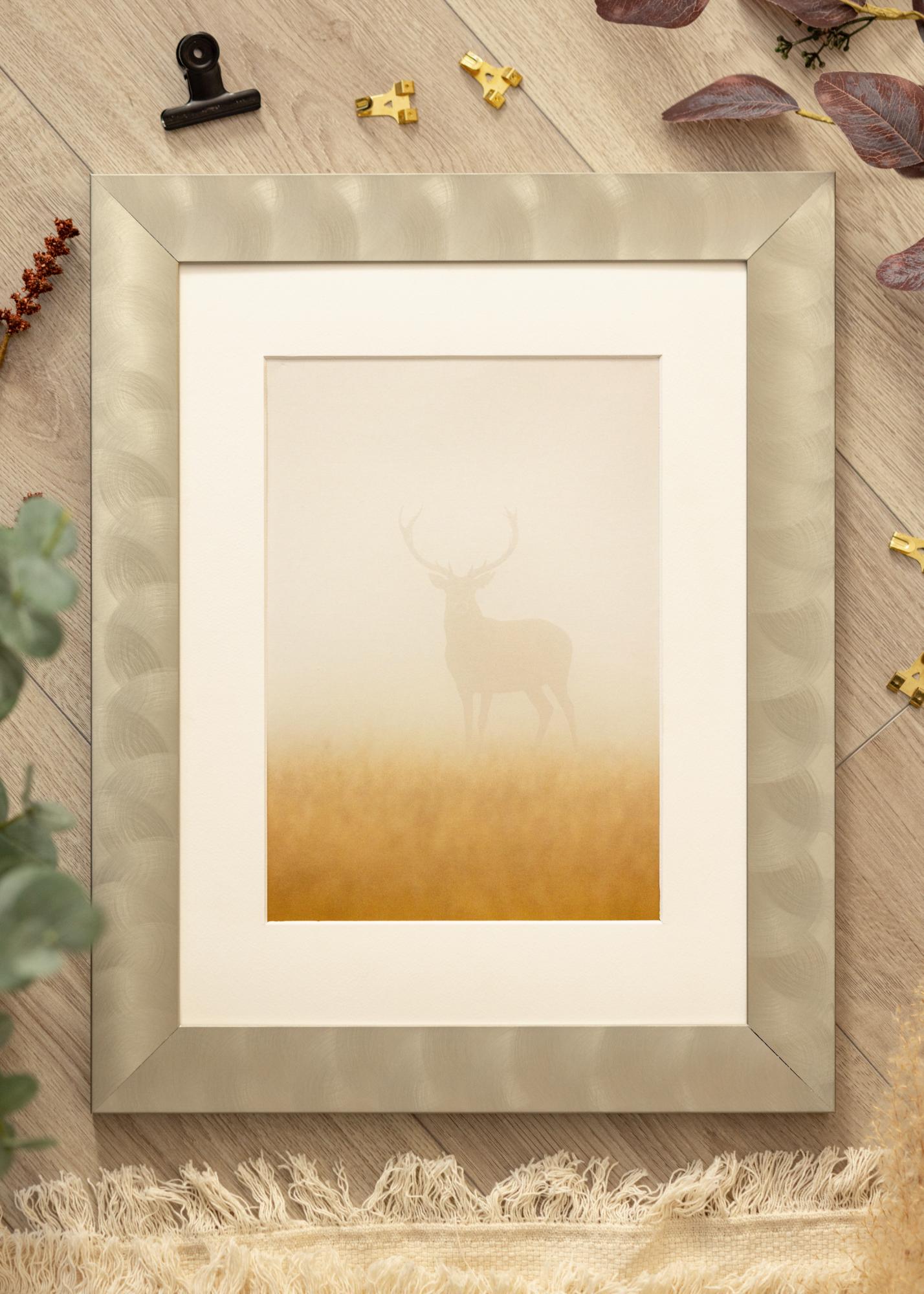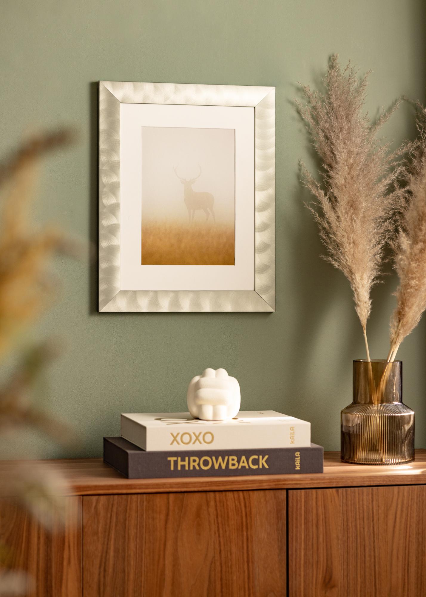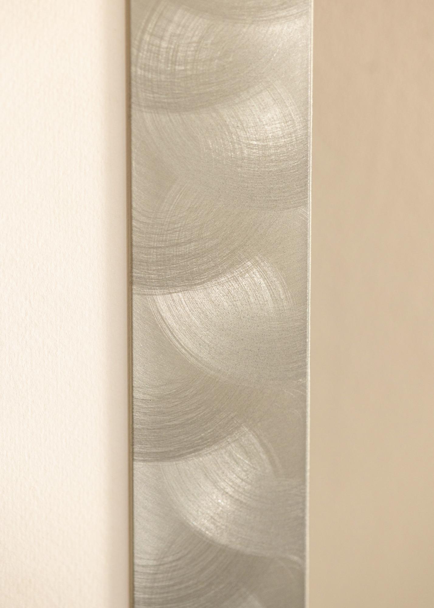 Moldura larga feita de alumínio de alta qualidade, com uma aparência de aço-claro, que se encaixa bem tanto em estilos de decoração minimalistas quanto mistos. A moldura é adequada para emoldurar fotografias em preto e branco, pósteres com citações e impressões gráficas. Pendure o quadro junto com mais motivos correspondentes ou combine molduras de diferentes tamanhos para criar uma galeria de parede no sala de estar e obter um ponto focal diferente da TV.