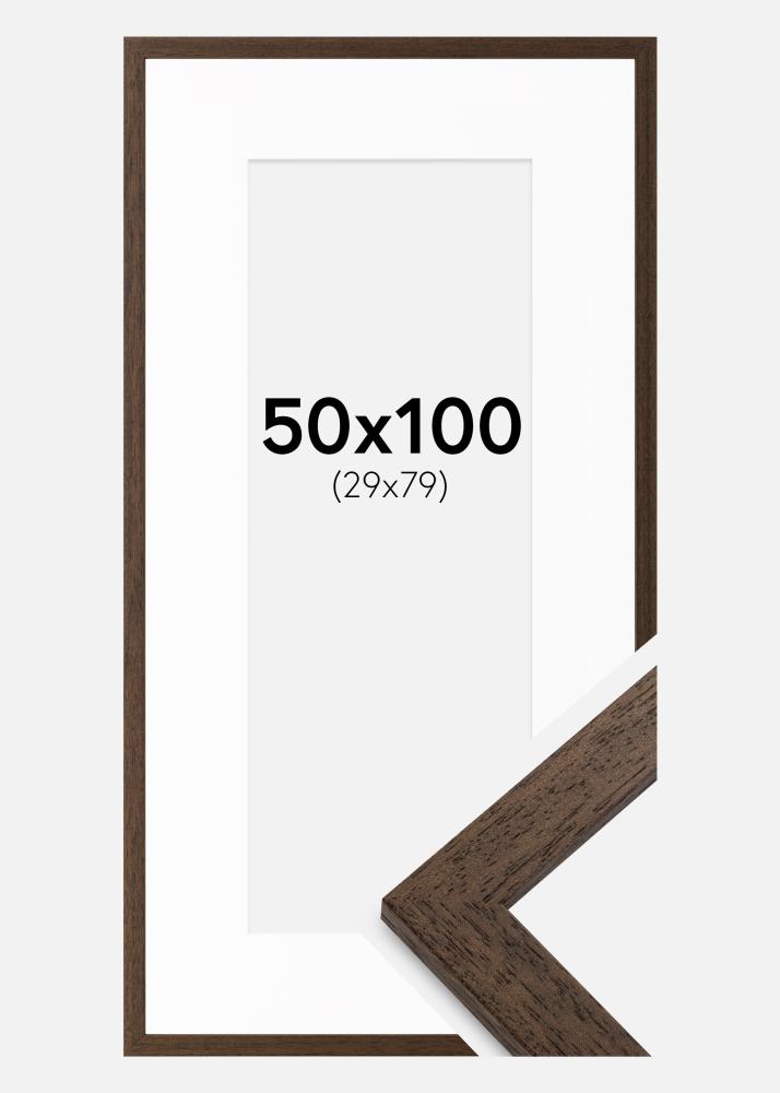 Moldura Brown Wood 50x100 cm - Passe-partout Branco 30x80 cm