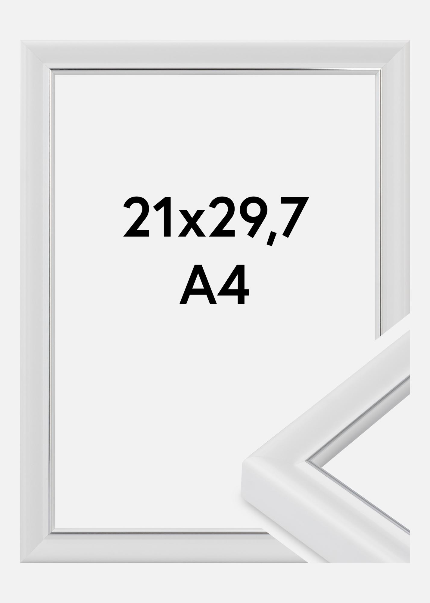 Esta Moldura elegante em Branco é perfeita para realçar os teus motivos favoritos no tamanho 21x29,7 cm (A4). Com uma moldura de 23 mm de largura e 27 mm de profundidade, esta Moldura para quadros oferece um design moderno, mas ao mesmo tempo clássico. A superfície lisa, num suave tom de madeira Branco, deixa transparecer subtilmente a textura natural da madeira, proporcionando uma sensação intemporal.