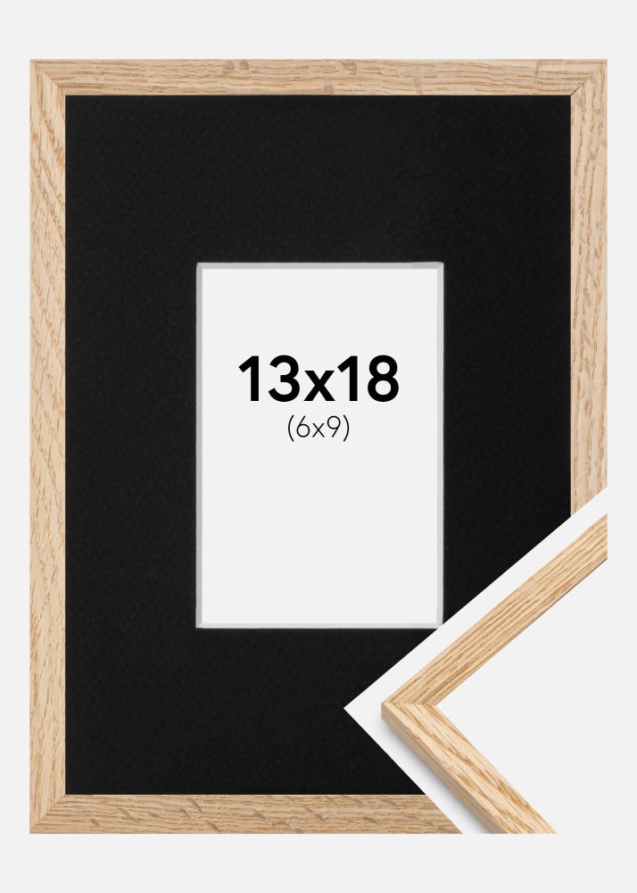 Moldura Carvalho Fino 13x18 cm - Passe-partout Preto 7x10 cm