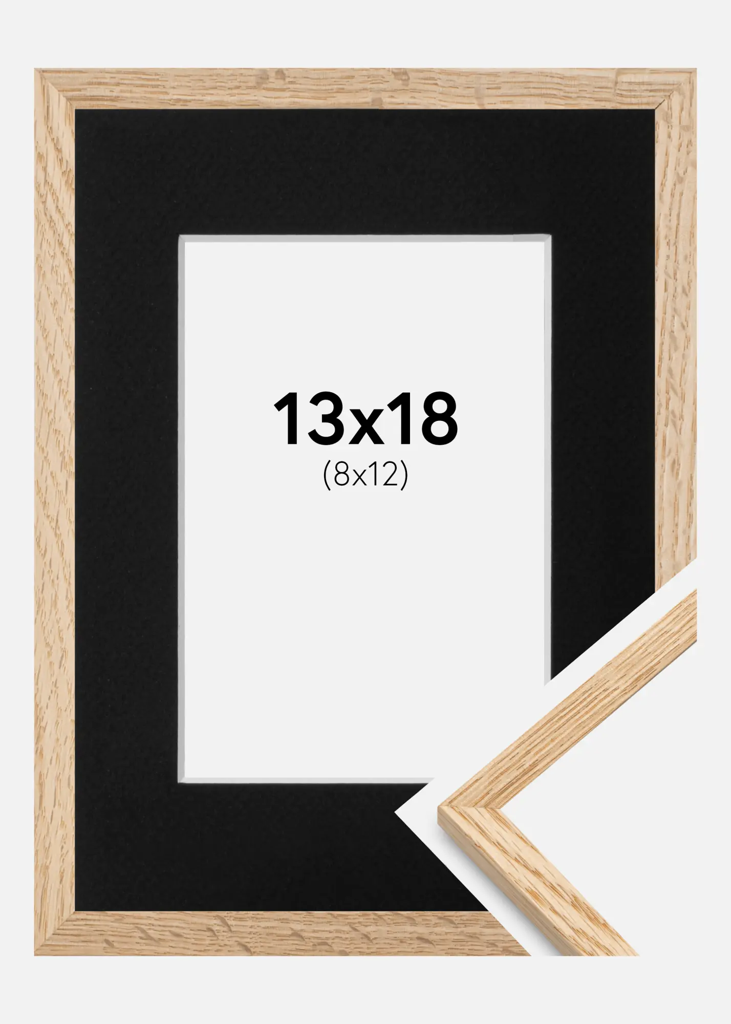 Moldura Carvalho Fino 13x18 cm - Passe-partout Preto 9x13 cm