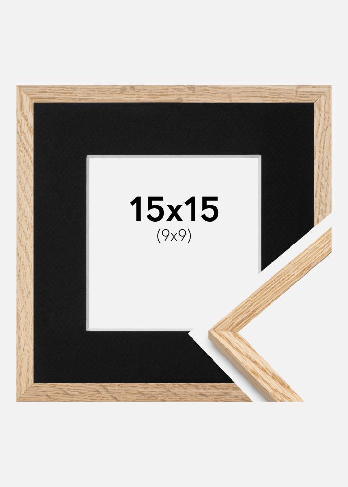 Moldura Carvalho Fino 15x15 cm - Passe-partout Preto 10x10 cm