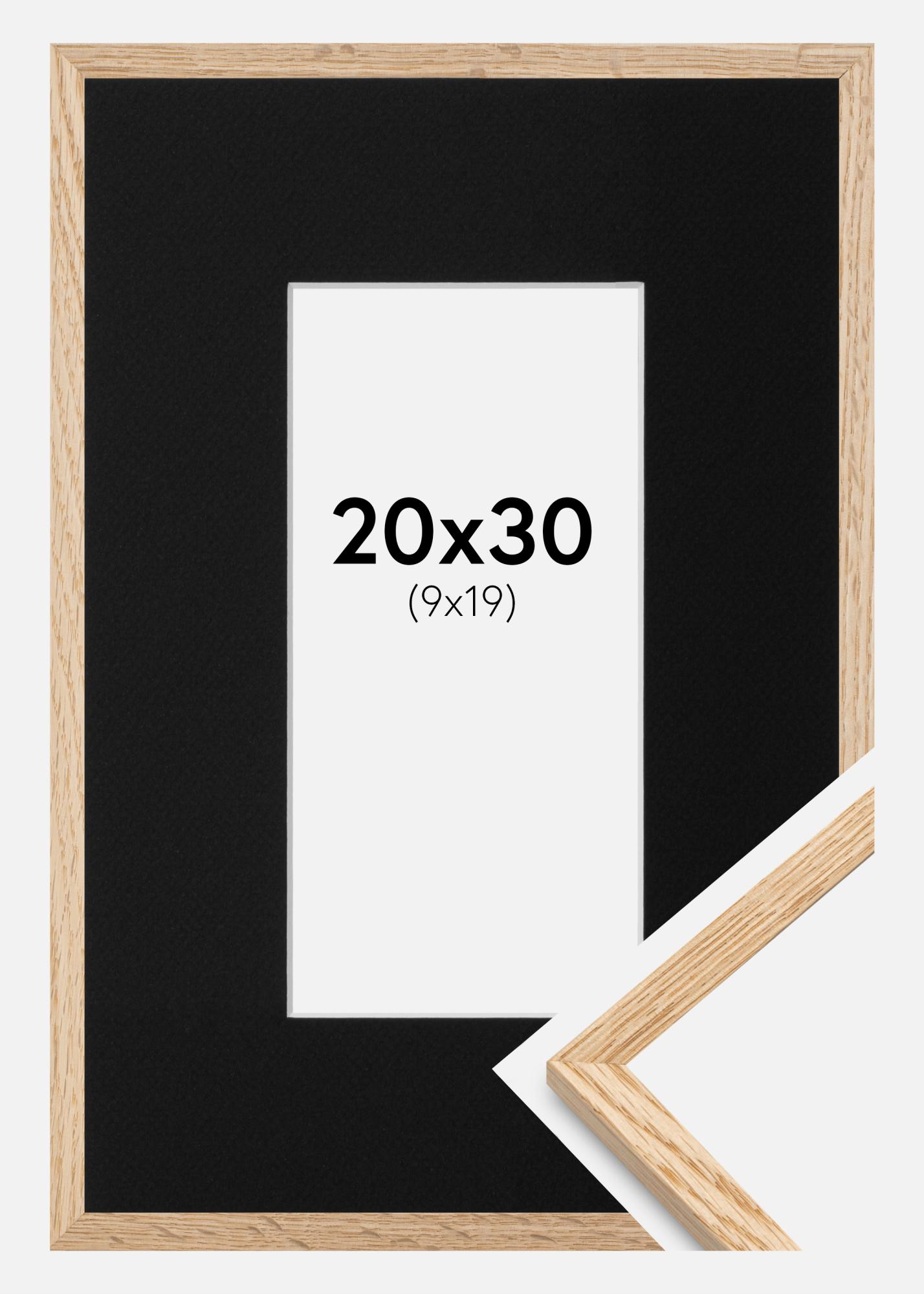 Moldura Carvalho Fino 20x30 cm - Passe-partout Preto 10x20 cm