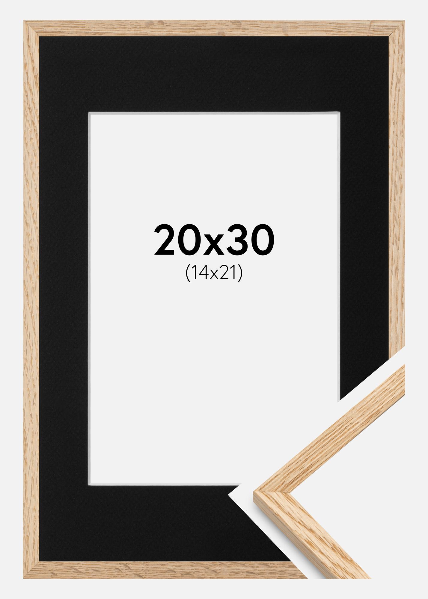 Moldura Carvalho Fino 20x30 cm - Passe-partout Preto 15x22 cm