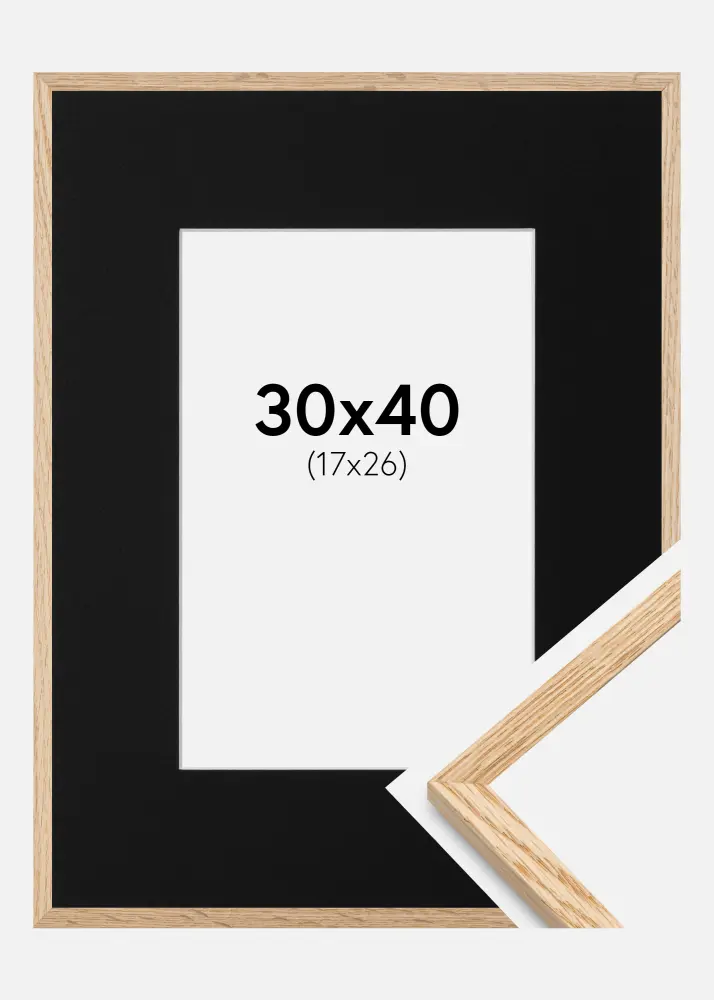Moldura Carvalho Fino 30x40 cm - Passe-partout Preto 18x27 cm