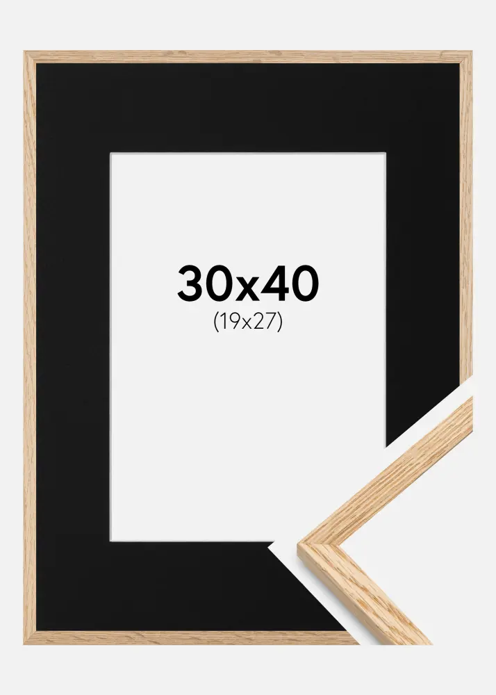 Moldura Carvalho Fino 30x40 cm - Passe-partout Preto 20x28 cm