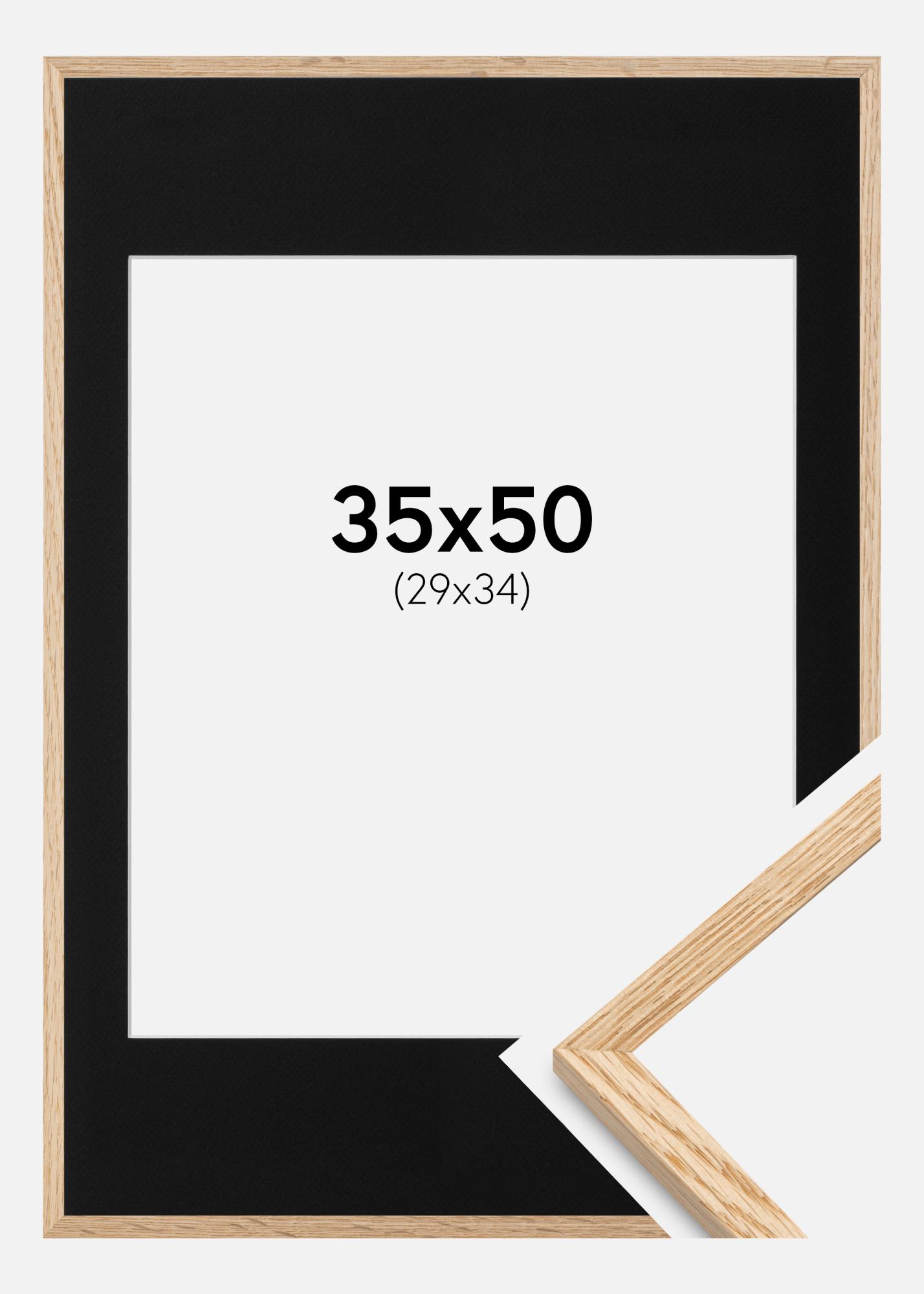 Moldura Carvalho Fino 35x50 cm - Passe-partout Preto 30x35 cm