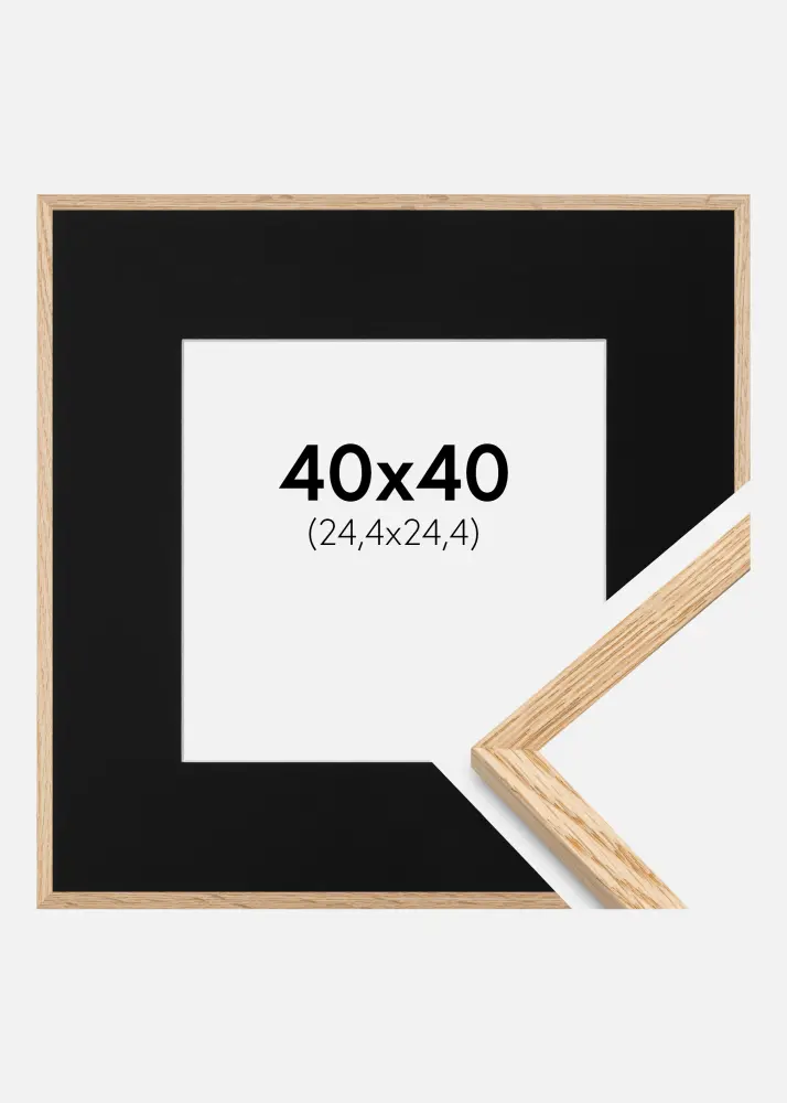 Moldura Carvalho Fino 40x40 cm - Passe-partout Preto 10x10 inches