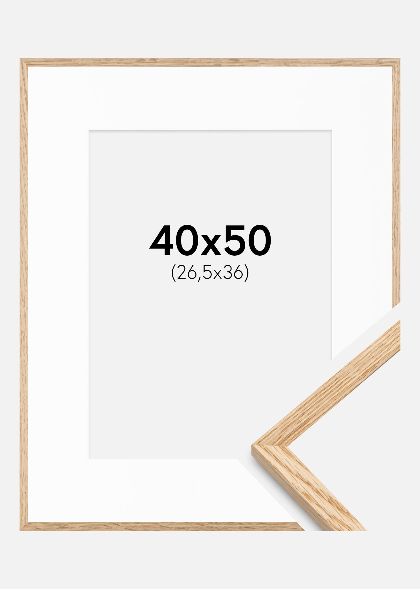 Moldura Carvalho Fino 40x50 cm - Passe-partout Branco 27,5x37 cm