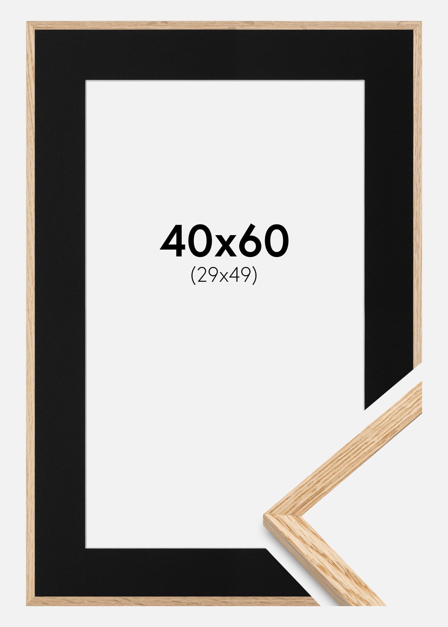 Moldura Carvalho Fino 40x60 cm - Passe-partout Preto 30x50 cm