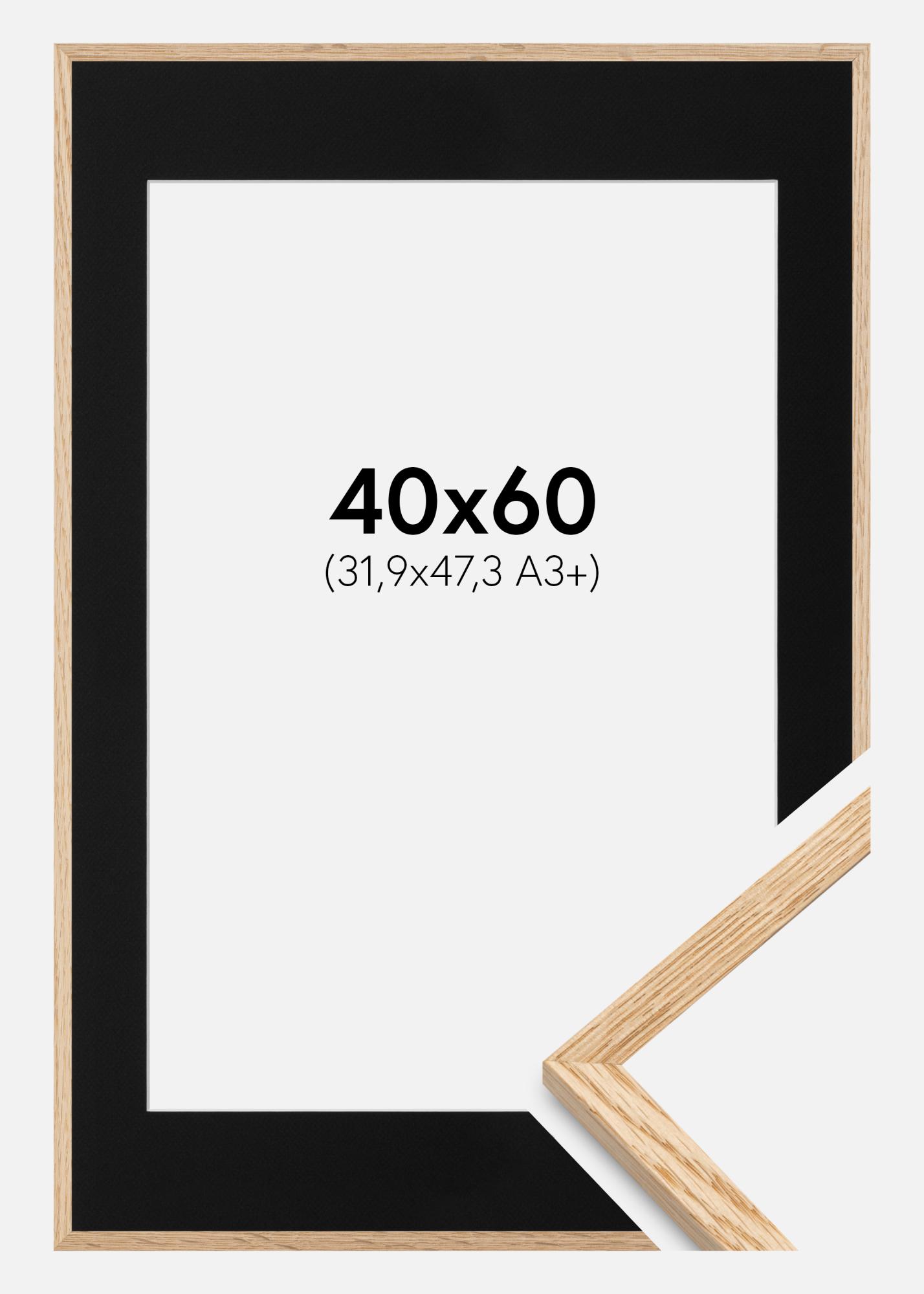 Moldura Carvalho Fino 40x60 cm - Passe-partout Preto 32,9x48,3 cm (A3+)