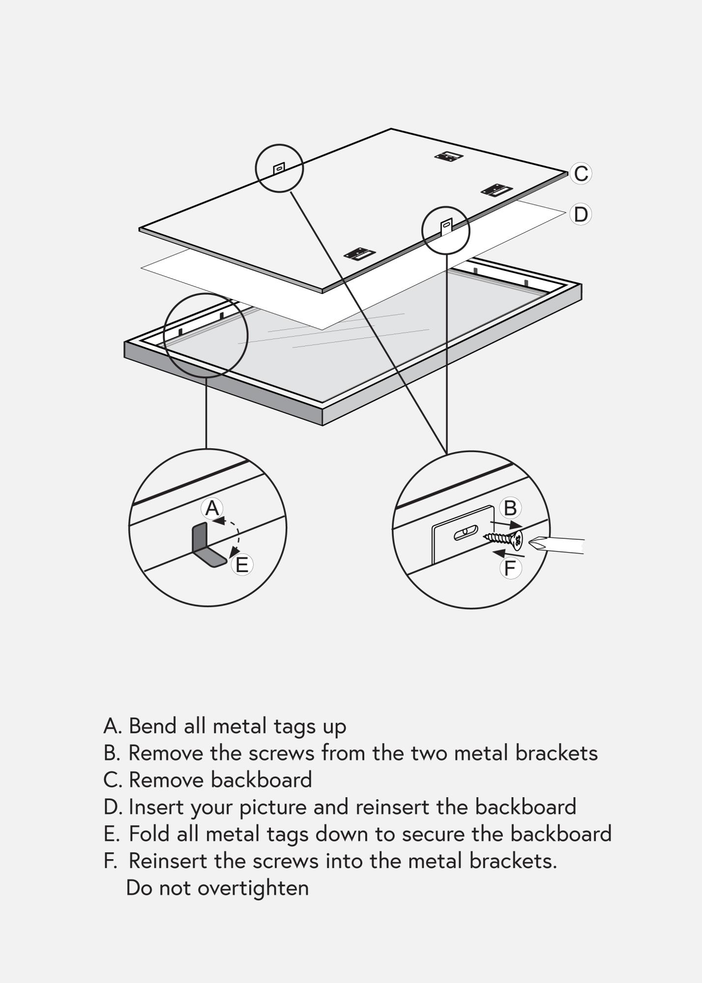 A moldura possui uma largura de 14 mm e uma profundidade de 18 mm, o que confere uma sensação estável e robusta. Equipado com ganchos de metal na parte de trás, esta moldura pode ser facilmente pendurada tanto horizontal quanto verticalmente, o que oferece flexibilidade na forma como você deseja exibir suas fotos. O vidro acrílico cristalino e à prova de estilhaços protege sua imagem ao mesmo tempo que proporciona uma exibição clara e nítida. Lembre-se de remover o filme protetor de ambos os lados do vidro antes do uso para obter o melhor resultado.