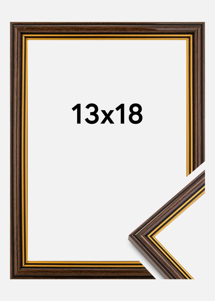 Se está à procura de uma moldura clássica numa cor de madeira escura, "Classic Valnöt" é uma excelente escolha. A moldura numa cor de noz escura e possui duas linhas finas douradas próximas à imagem.