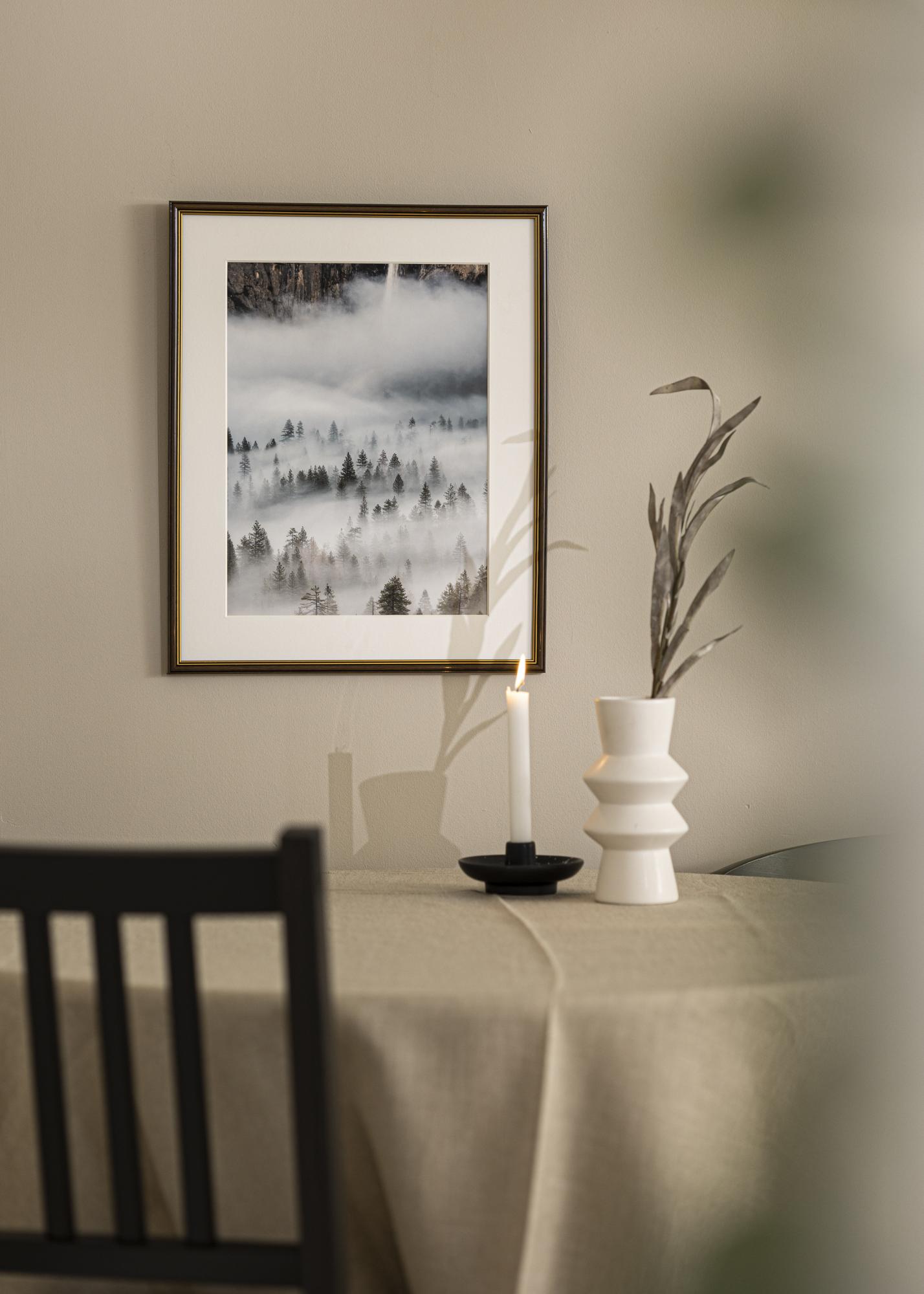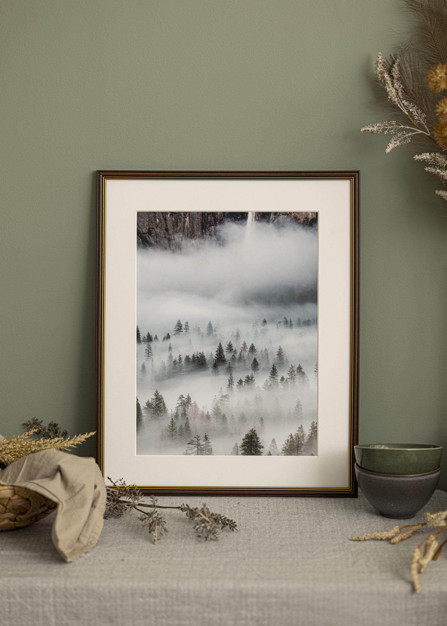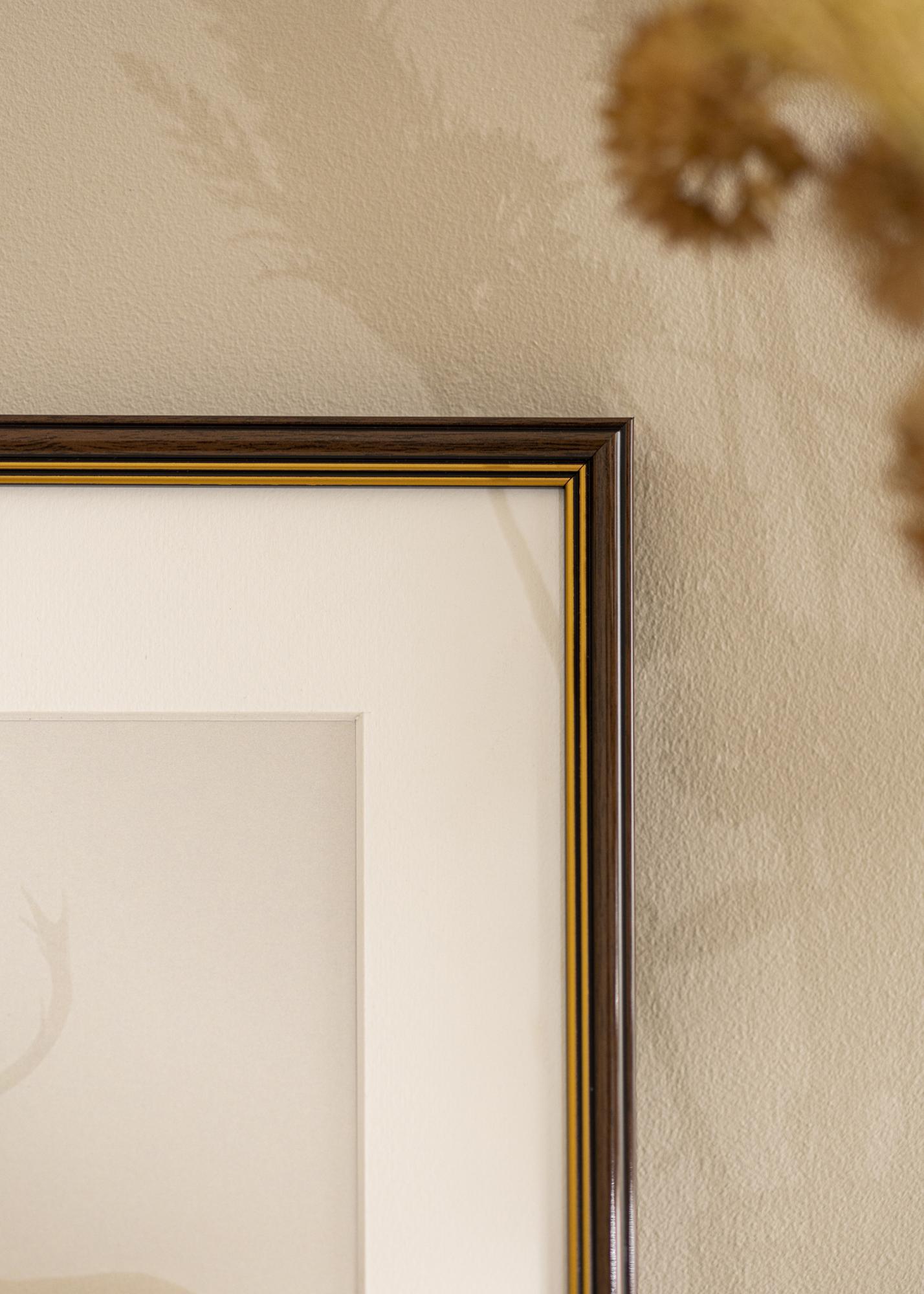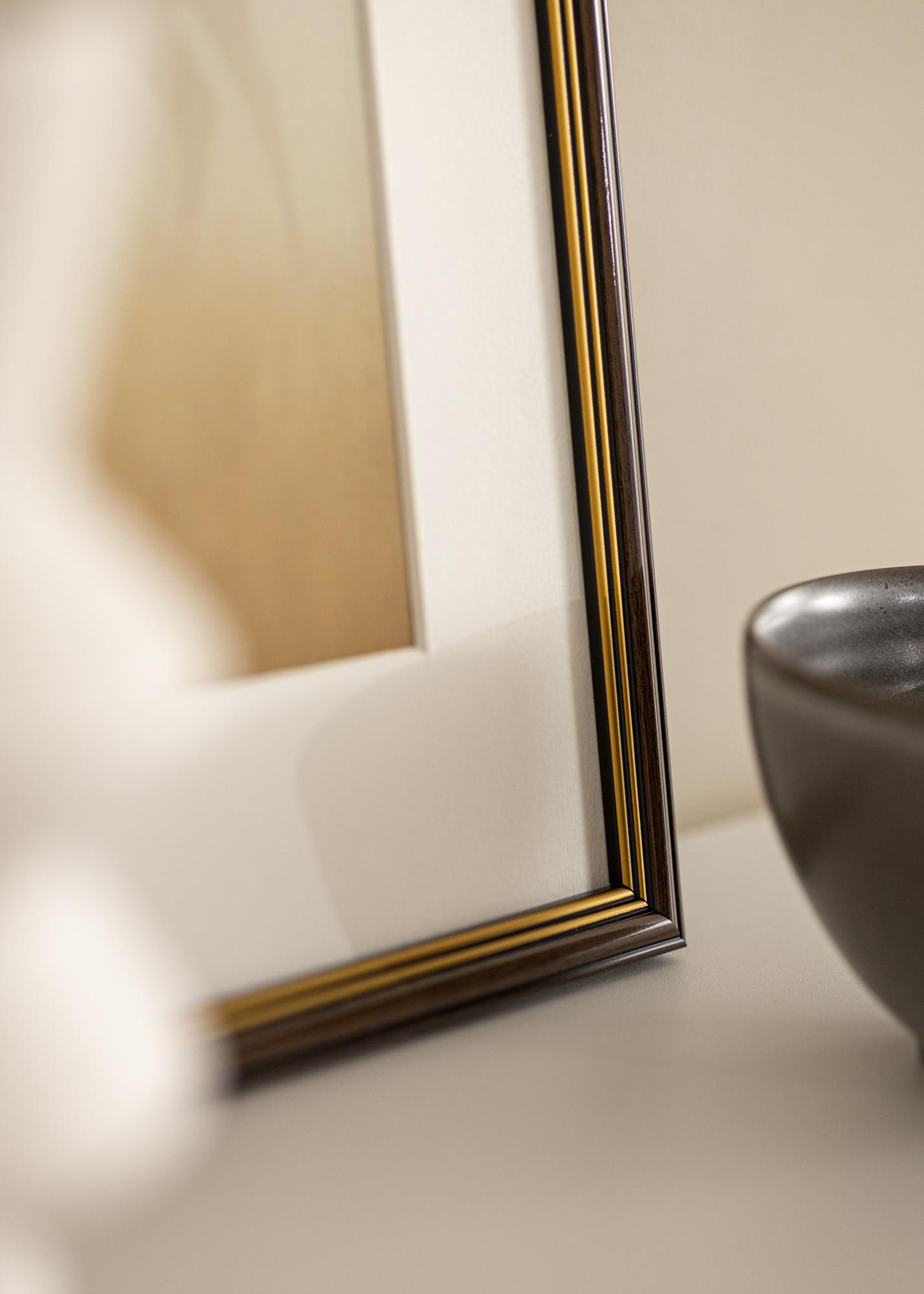 Se está à procura de uma moldura clássica numa cor de madeira escura, "Classic Valnöt" é uma excelente escolha. A moldura numa cor de noz escura e possui duas linhas finas douradas próximas à imagem.