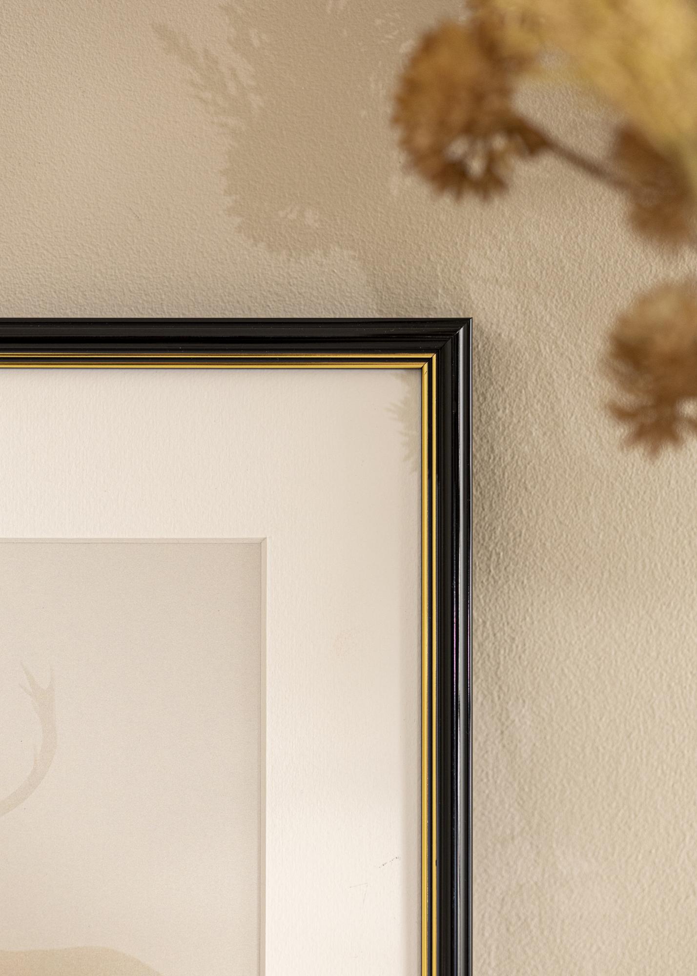 Se está à procura de uma moldura clássica com uma aparência elegante a um bom preço, "Classic Preto" é o que está à procura. Com o seu perfil arredondado preto decorado com duas linhas finas douradas, esta é uma