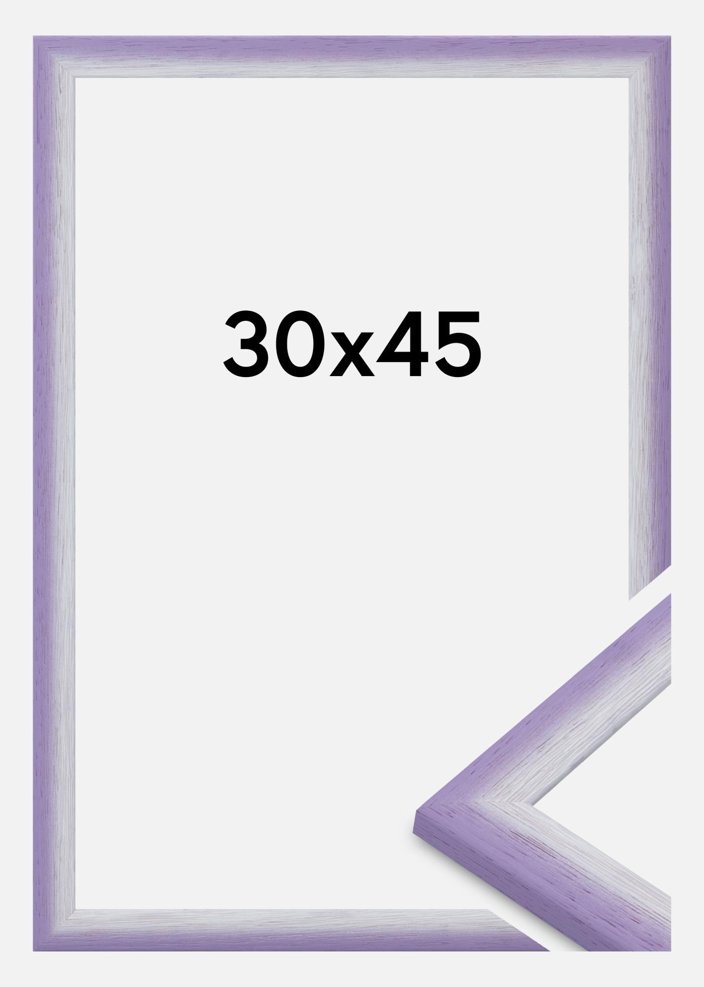 Esta Moldura para fotos no tamanho 30x45 cm é uma combinação perfeita de design moderno e elegância clássica. Com o seu suave tom Roxo claro e superfície lisa, realça de forma subtil a textura da madeira de maneira elegante. A faixa da Moldura com 23 mm de largura oferece um visual sóbrio e minimalista, permitindo que o seu motivo seja o centro das atenções.