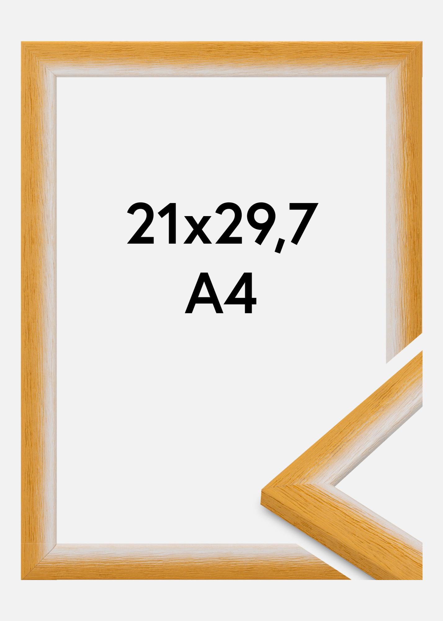 Esta Moldura para fotografias no tamanho 21x29,7 cm (A4) é uma combinação perfeita de design moderno e elegância clássica. Com um tom quente de Amarelo e uma superfície lisa, realça subtilmente a textura natural da madeira. O perfil estreito, com uma moldura de 23 mm e uma profundidade de 13 mm, oferece uma expressão elegante e minimalista que permite que o seu motivo seja o centro das atenções.