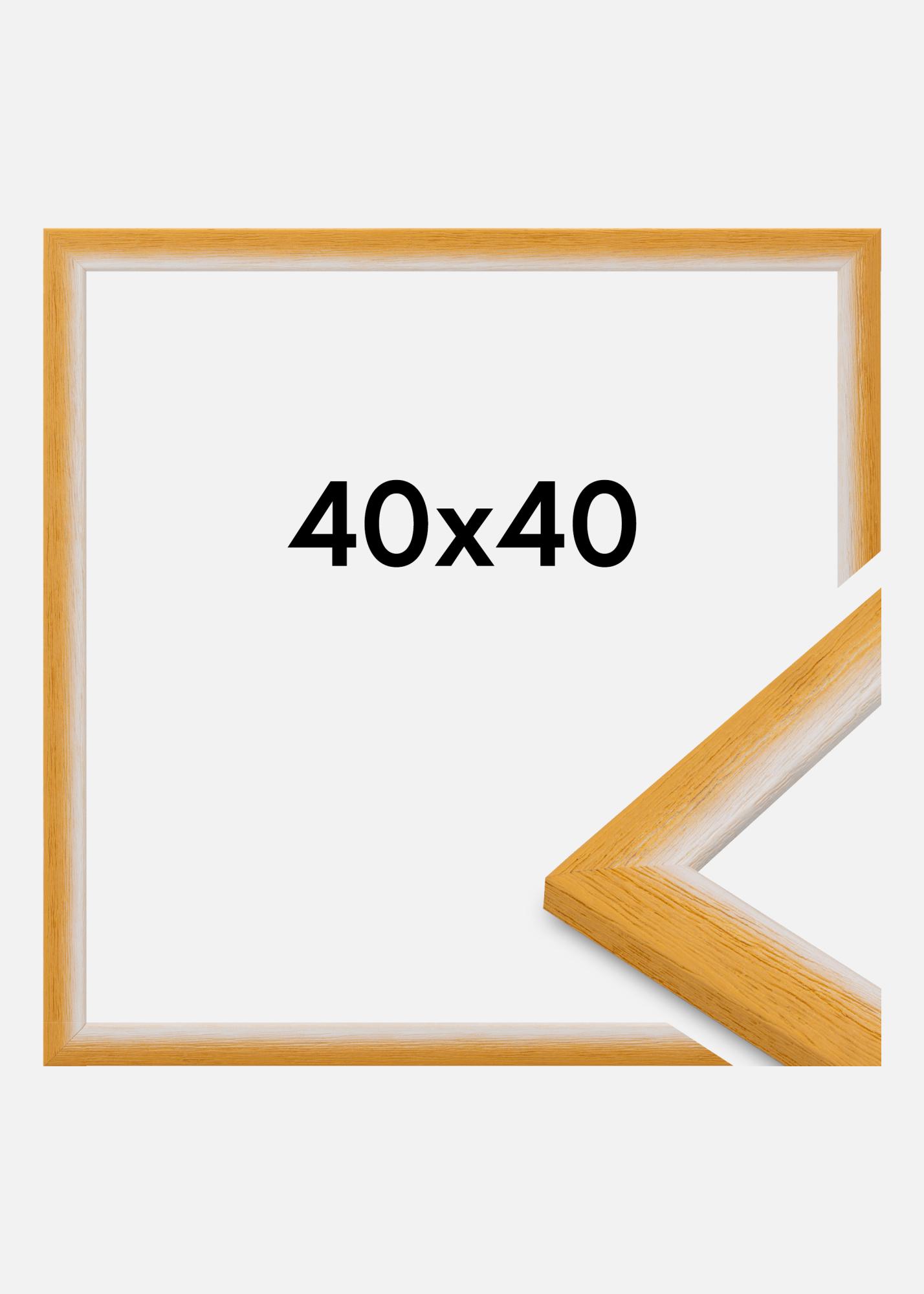 Esta Moldura para fotos no tamanho 40x40 cm é uma combinação perfeita de design moderno e elegância clássica. Com o seu tom amarelo quente e superfície lisa, realça de forma subtil a textura natural da madeira. A Moldura estreita, com 23 mm de largura e 13 mm de profundidade, oferece uma expressão elegante e minimalista que deixa o seu motivo em destaque.
