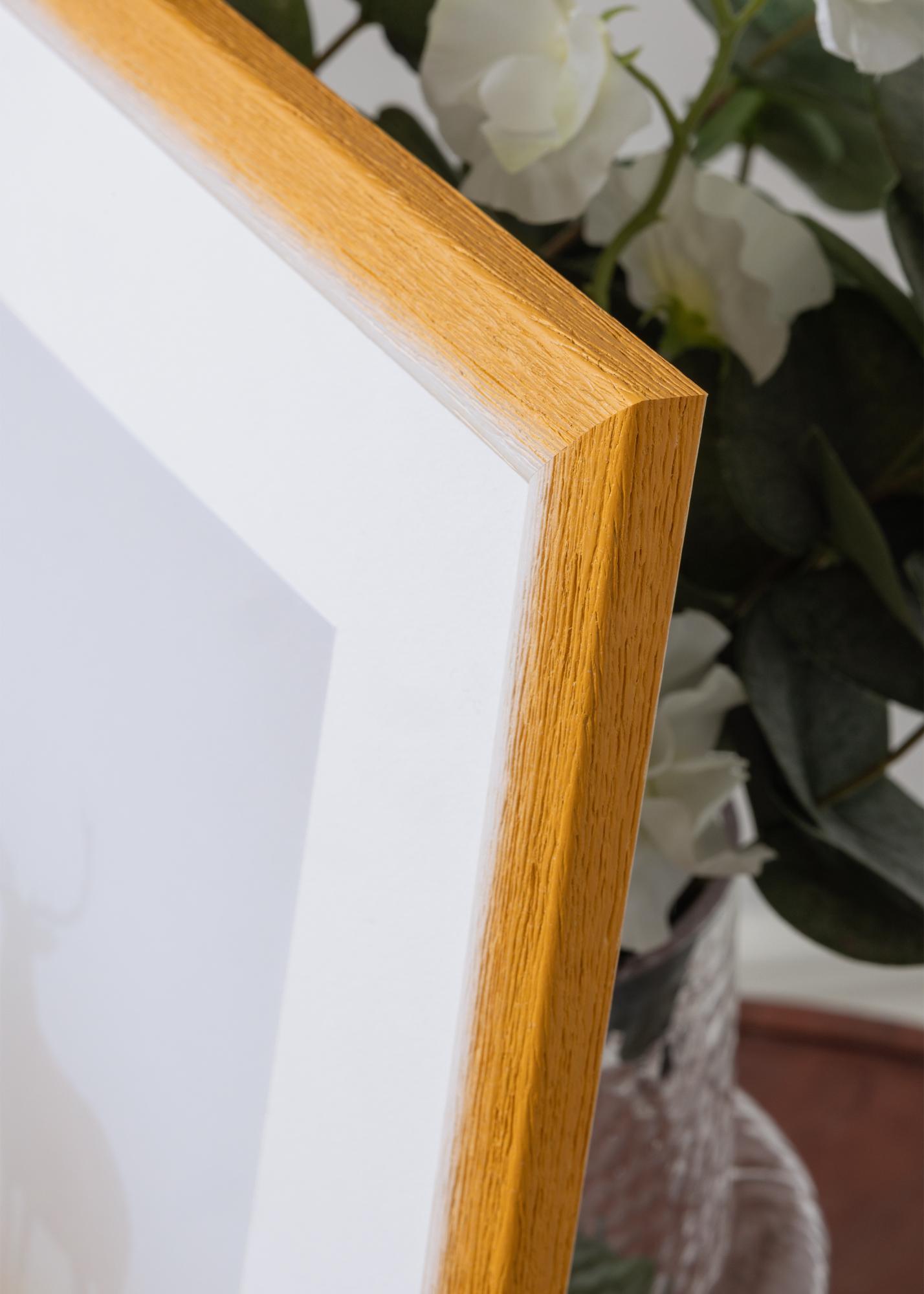 Esta Moldura para fotos no tamanho 60x80 cm é uma combinação perfeita de design moderno e elegância clássica. Com o seu tom amarelo quente e superfície lisa, realça de forma subtil a textura natural da madeira. O perfil estreito, com uma lista de Moldura de 23 mm de largura e 13 mm de profundidade, oferece uma expressão elegante e minimalista que permite que o teu motivo seja o centro das atenções.