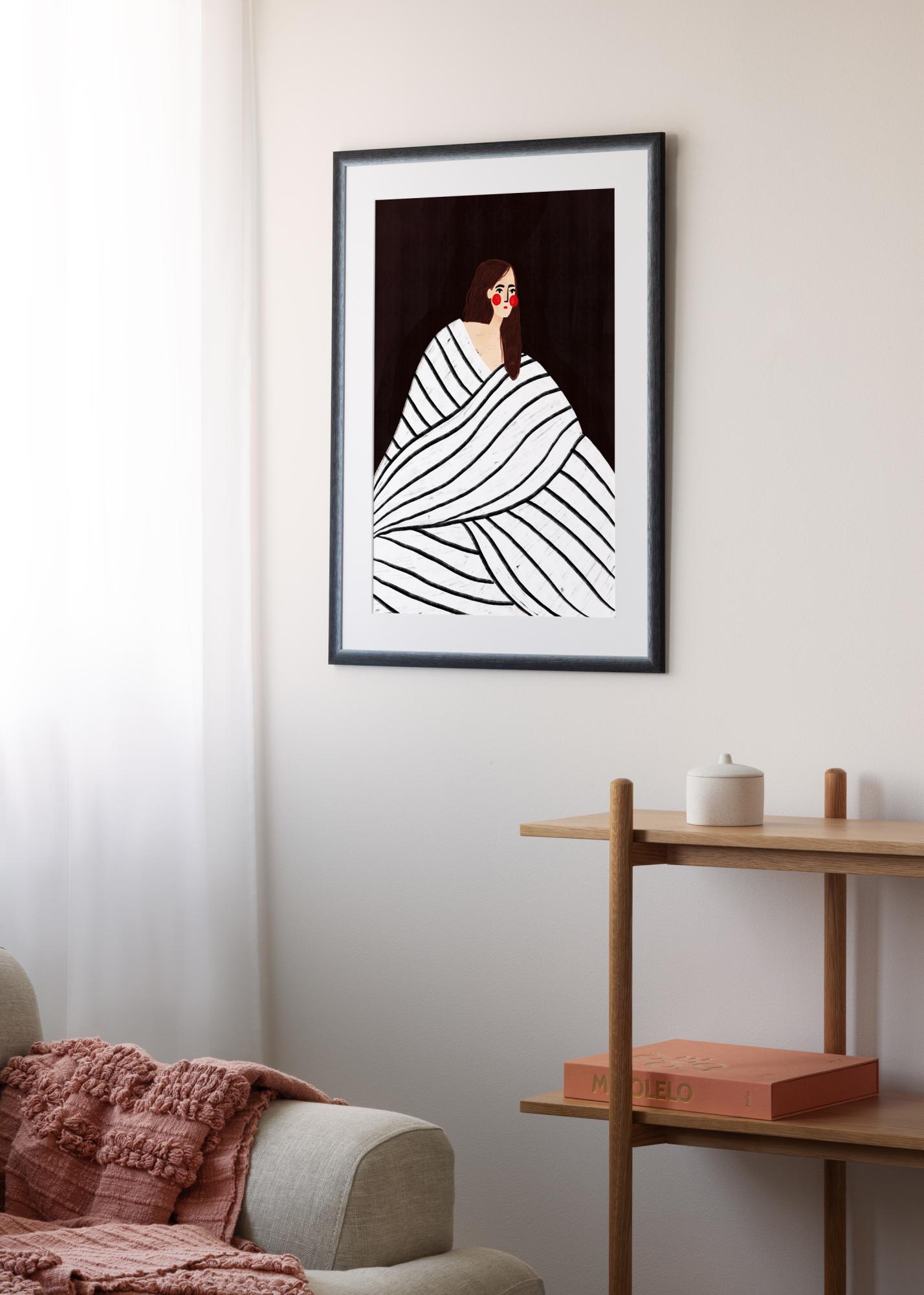 A Moldura apresenta uma superfície lisa num tom profundo de Cinza escuro que destaca a textura natural da madeira. O perfil estreito confere um aspeto minimalista, permitindo que o motivo seja o centro das atenções. Os cantos precisos e o acabamento suave criam uma sensação harmoniosa que se adapta bem a casas modernas e de estilo escandinavo.