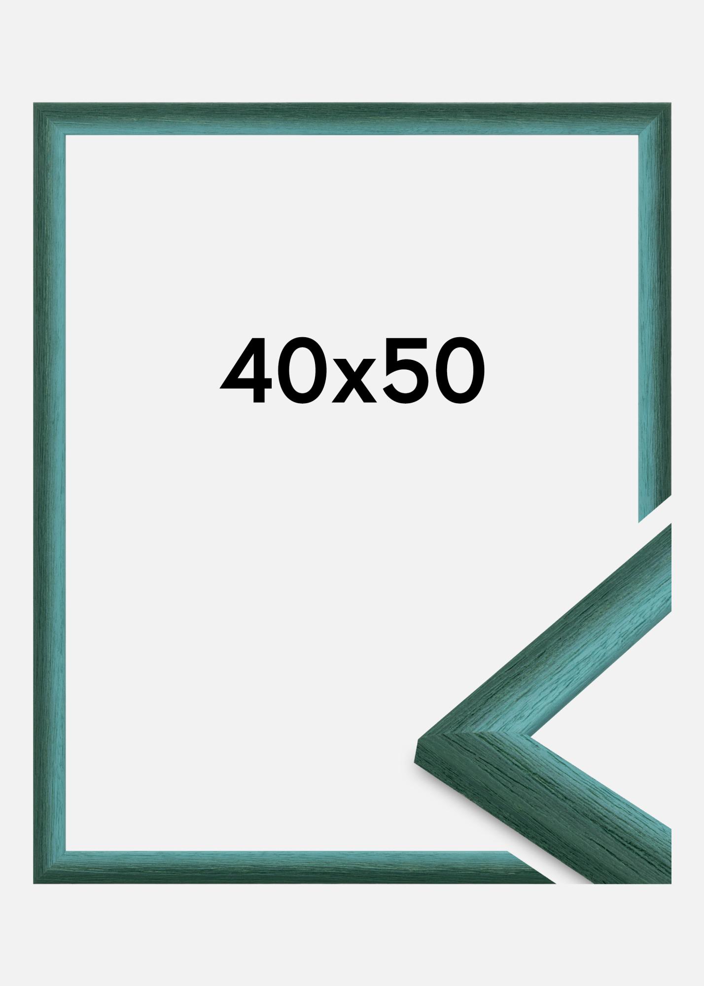 Esta Moldura para quadros no tamanho 40x50 cm é uma combinação perfeita de design moderno e beleza natural. Com o seu tom suavemente verde-turquesa e acabamento mate, realça de forma elegante a textura natural da madeira. O perfil estreito, com uma lista de Moldura de 23 mm e profundidade de 13 mm, oferece uma expressão simples e sofisticada que permite que o seu motivo seja o centro das atenções.