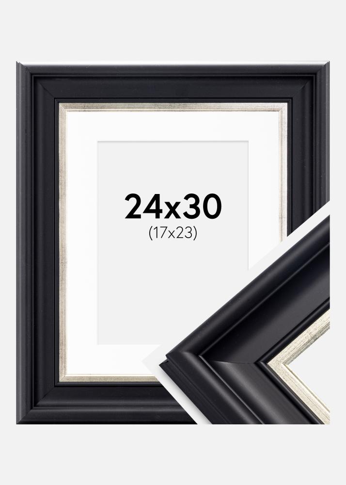 Moldura Dalarna Preto-Prateado 24x30 cm - Passe-partout Branco 18x24 cm