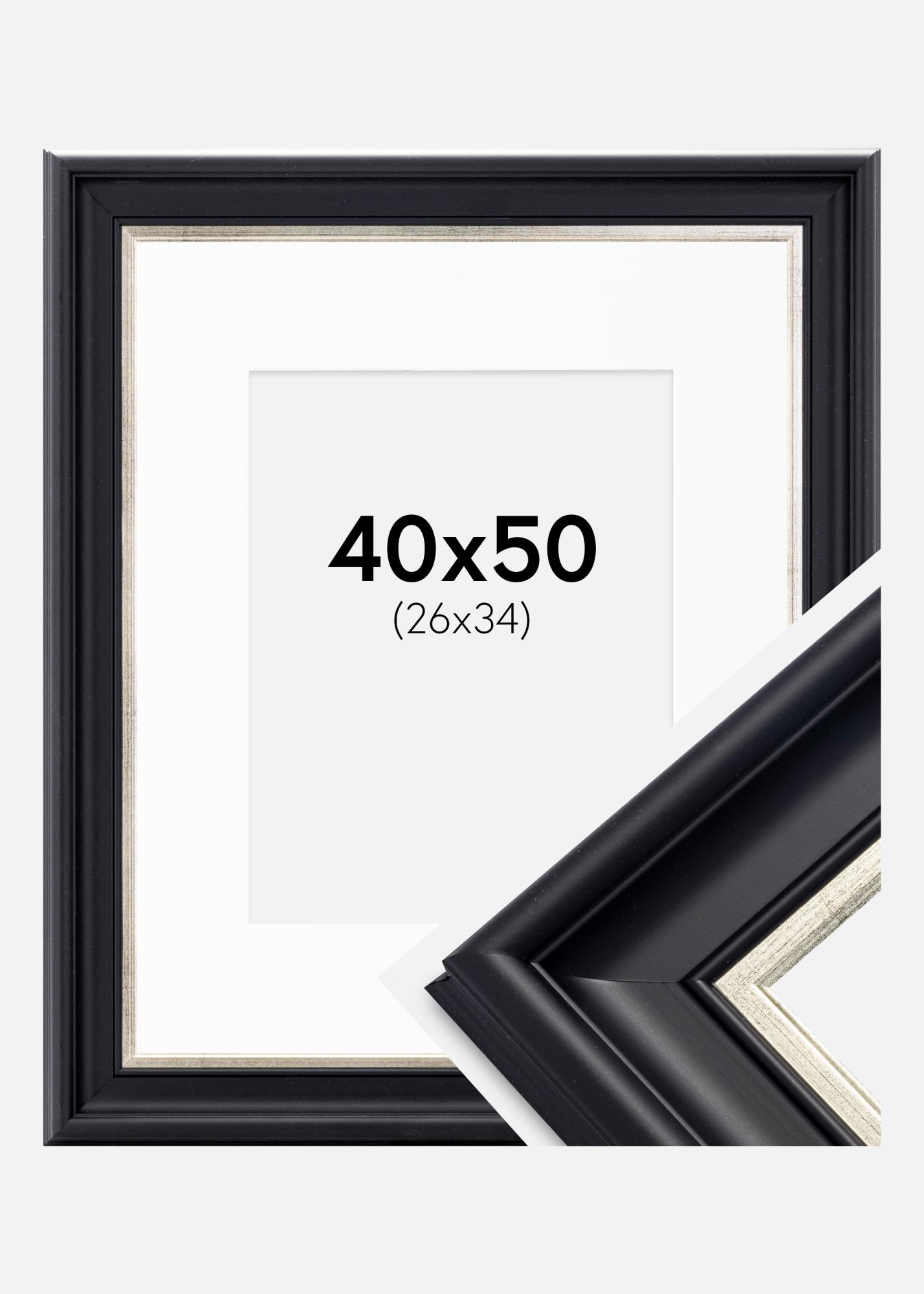 Moldura Dalarna Preto-Prateado 40x50 cm - Passe-partout Branco 27x35 cm