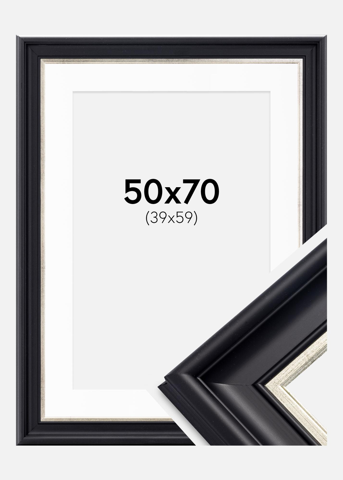 Moldura Dalarna Preto-Prateado 50x70 cm - Passe-partout Branco 40x60 cm