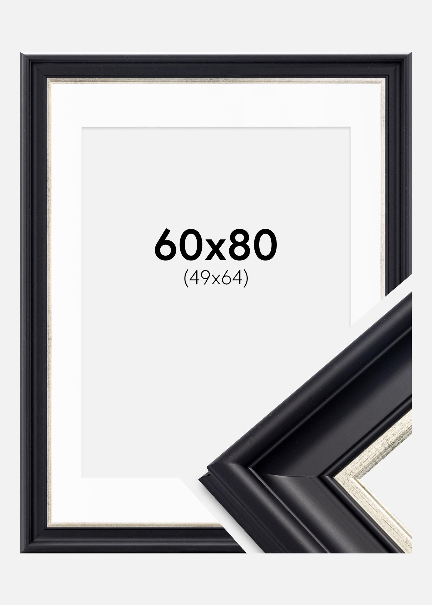 Moldura Dalarna Preto-Prateado 60x80 cm - Passe-partout Branco 50x65 cm