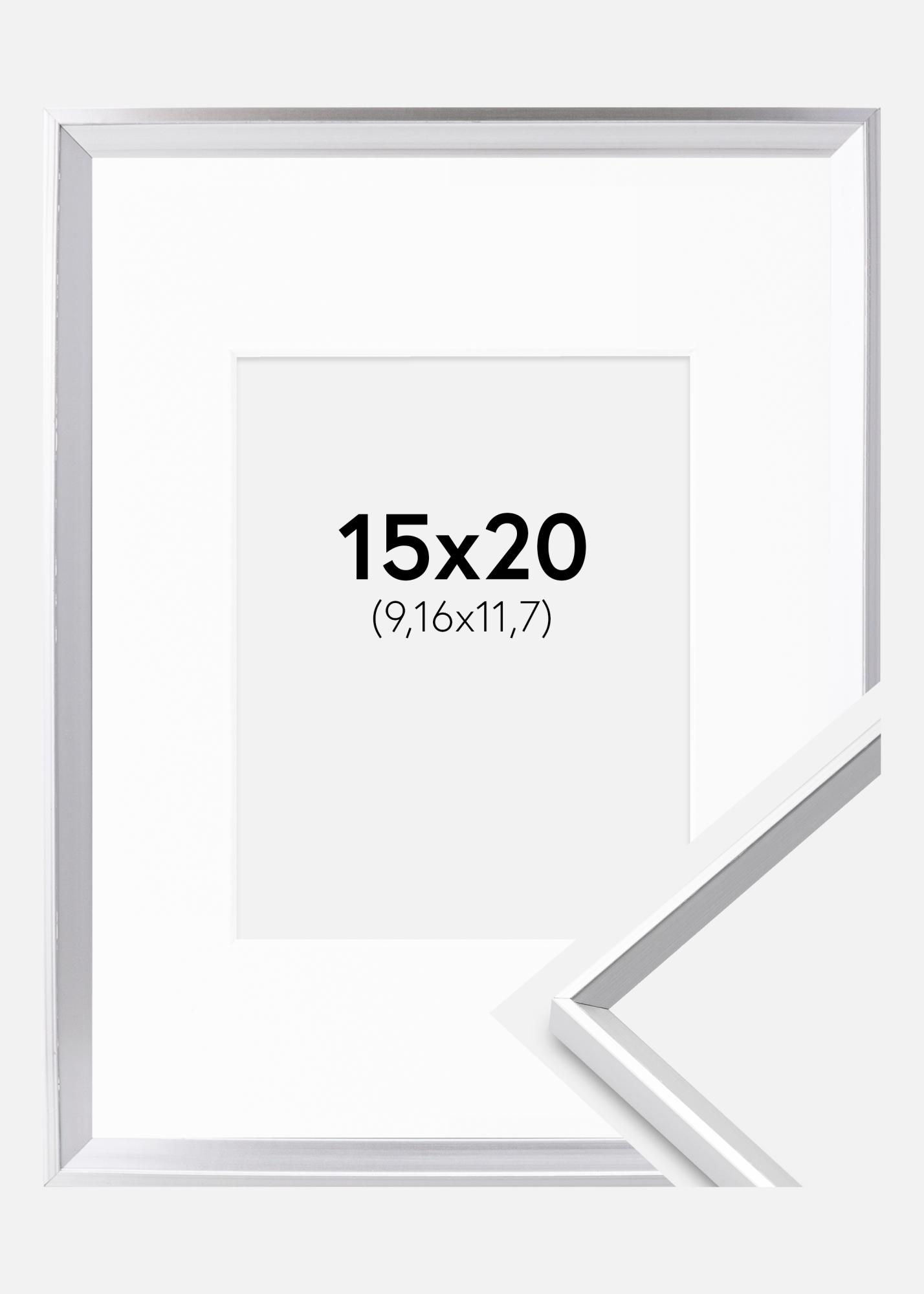 Moldura Desire Prateado 15x20 cm - Passe-partout Branco 4x5 inches