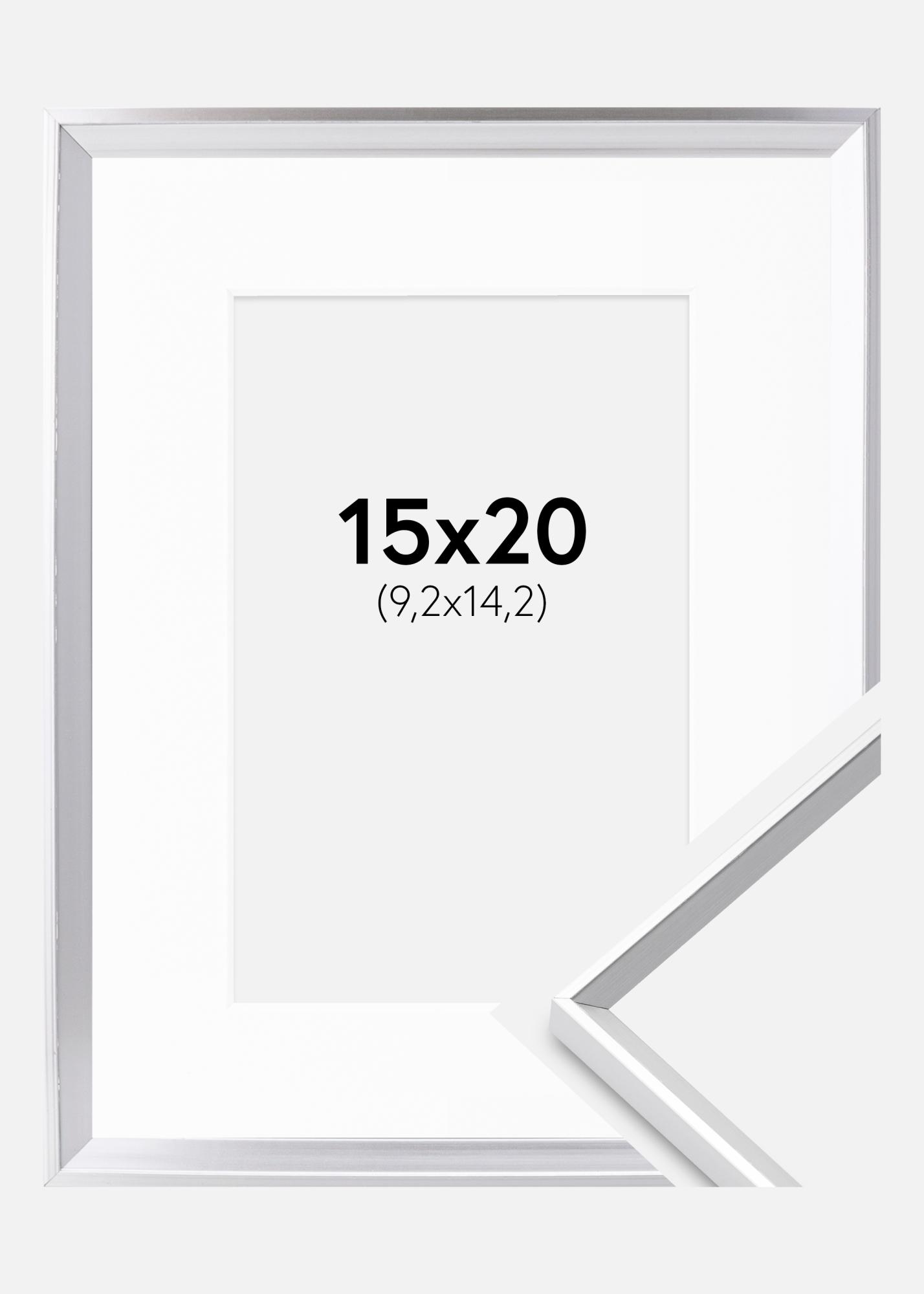 Moldura Desire Prateado 15x20 cm - Passe-partout Branco 4x6 inches