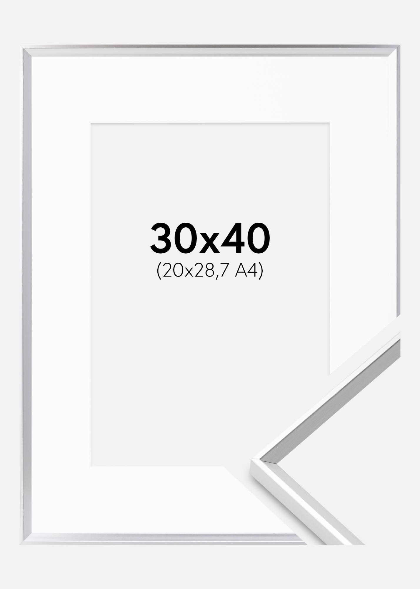 Moldura Desire Prateado 30x40 cm - Passe-partout Branco 21x29,7 cm (A4)