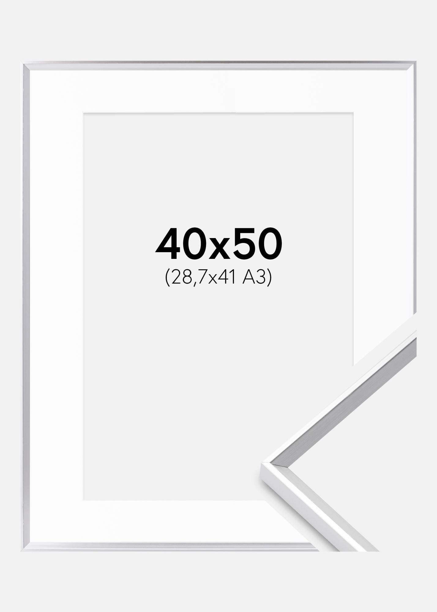 Moldura Desire Prateado 40x50 cm - Passe-partout Branco 29,7x42 cm (A3)