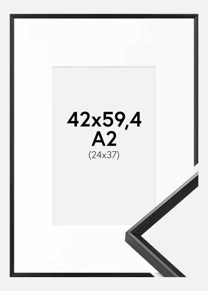 Moldura Desire Preto 42x59,4 cm (A2) - Passe-partout Branco 25x38 cm