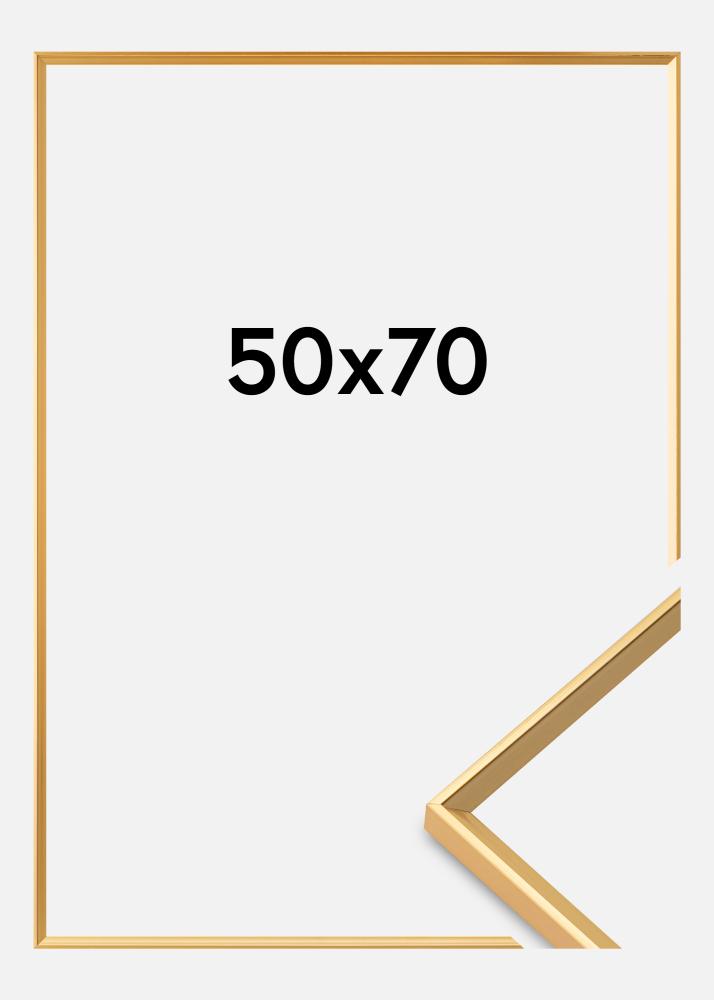 Dê às suas paredes um toque de elegância com a nossa moldura dourada brilhante. Com um tamanho de 50 x 70 cm, esta moldura é perfeita para realçar suas obras de arte favoritas ou fotos de família. A fina moldura de apenas 10 mm confere um visual elegante e moderno à sua casa.