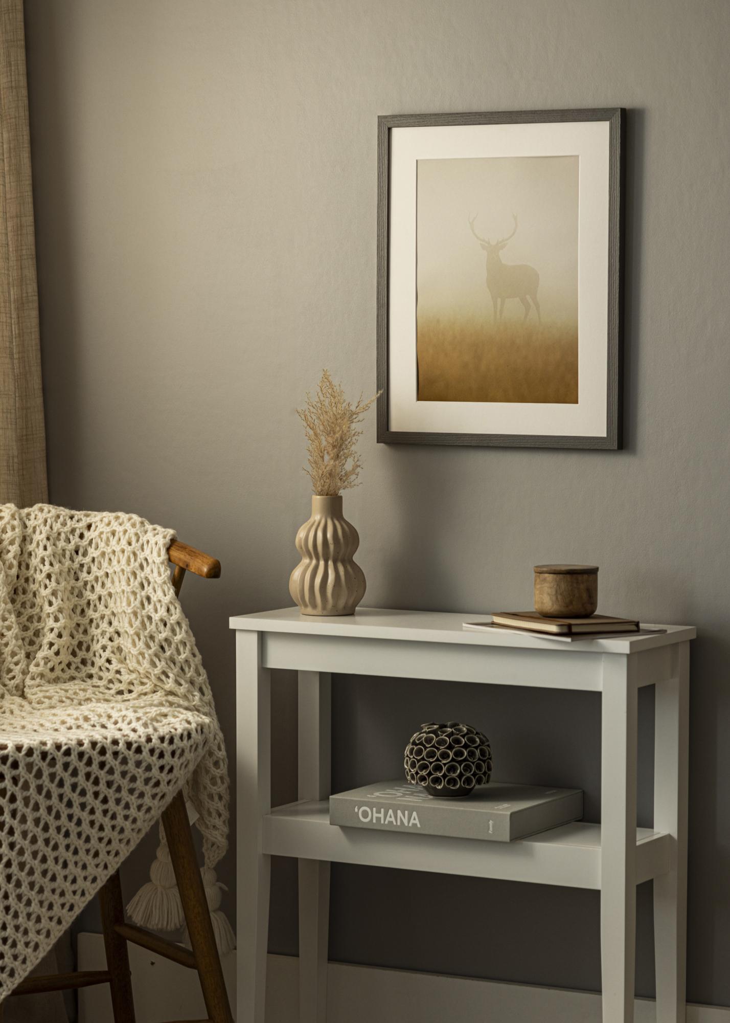 A moldura tem uma largura de 20 mm e uma profundidade de 20 mm, o que proporciona uma sensação estável e robusta. Fabricada em madeira de ayos de alta qualidade, esta moldura é durável e esteticamente atraente. Quer você queira emoldurar uma foto de família ou uma obra de arte, pode ter certeza de que Devon Antracit vai destacar o tema da melhor forma possível.
