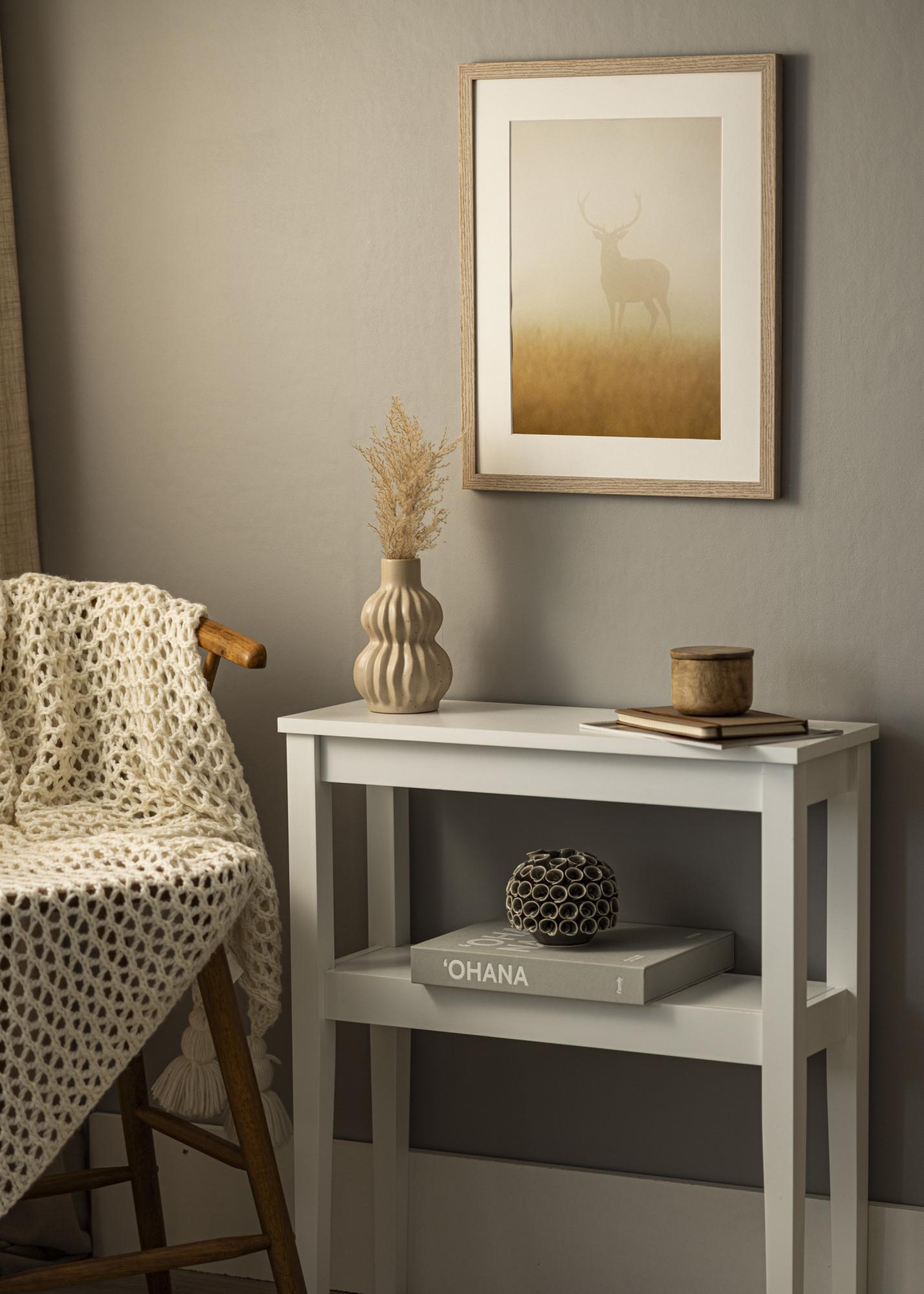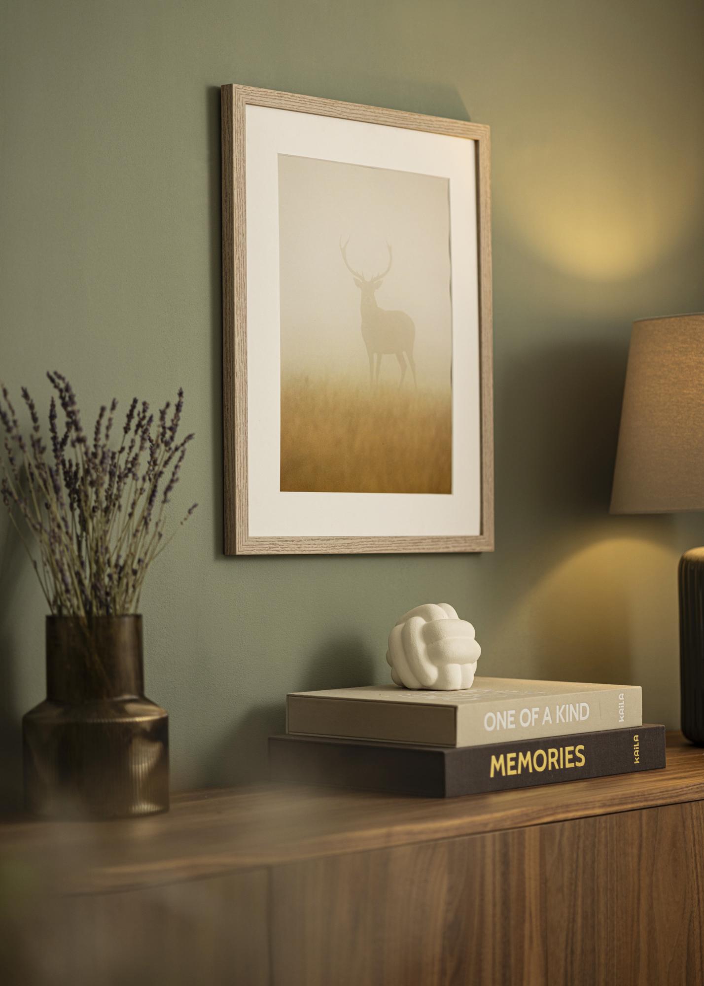 A moldura possui uma lista de moldura de 20 mm de largura e uma profundidade de 20 mm, o que proporciona uma sensação estável e robusta. Feita de madeira de ayous de alta qualidade, esta moldura para fotos é tanto durável quanto esteticamente atraente. A superfície mate reforça a impressão natural e destaca os veios da madeira de maneira elegante.