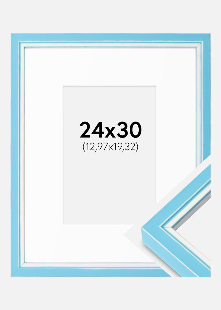 Moldura Diana Azul Claro 24x30 cm - passe-partout Branco 5,5x8 inches