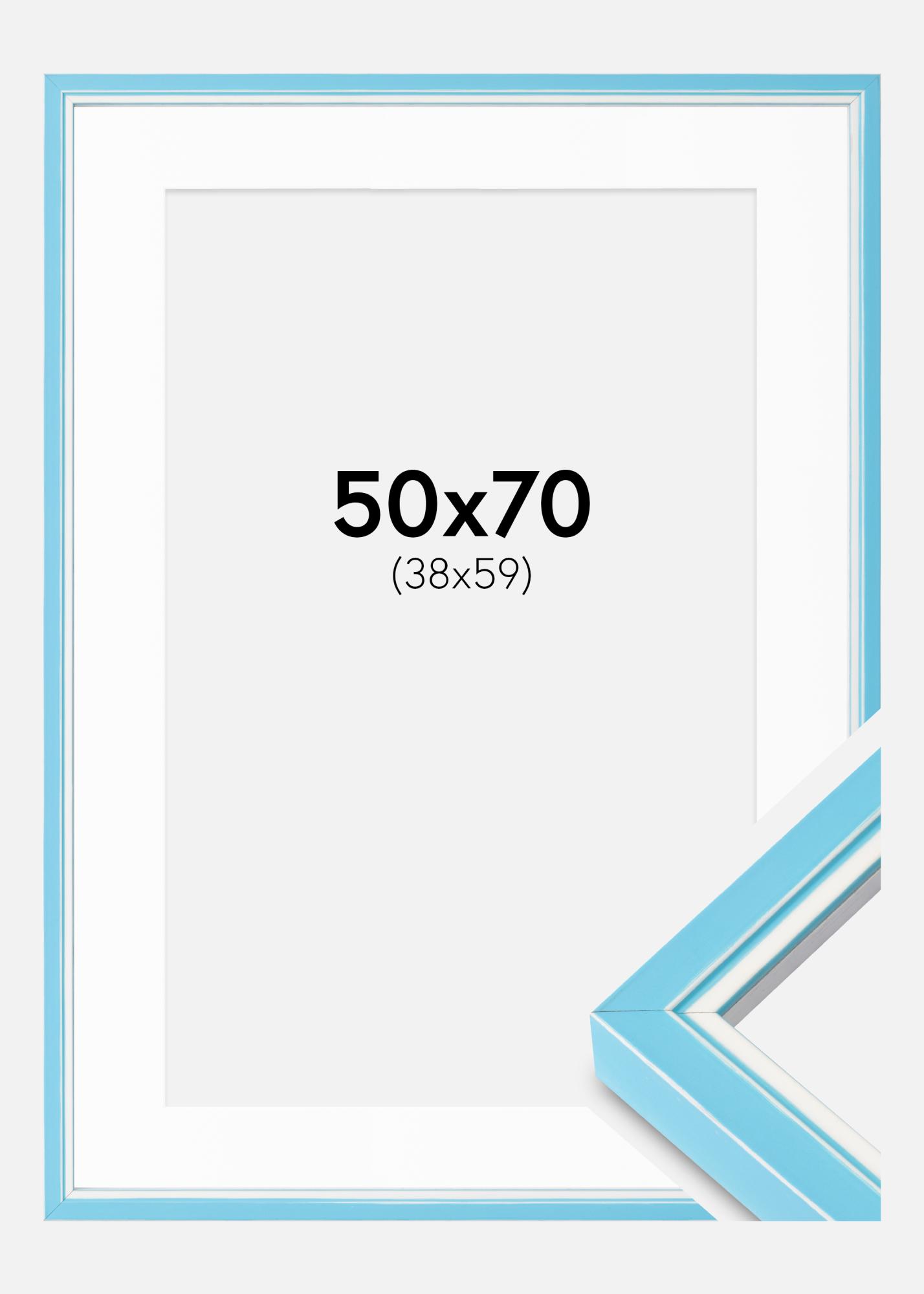 Transforme suas fotos em obras de arte com nossa elegante moldura azul, completa com um passe-partout branco. Esta moldura é perfeita para realçar suas fotos favoritas no tamanho de 39x60 cm. Com uma largura de moldura de 20 mm e uma profundidade de 32 mm, oferece uma moldura robusta e elegante que se adapta a qualquer casa.