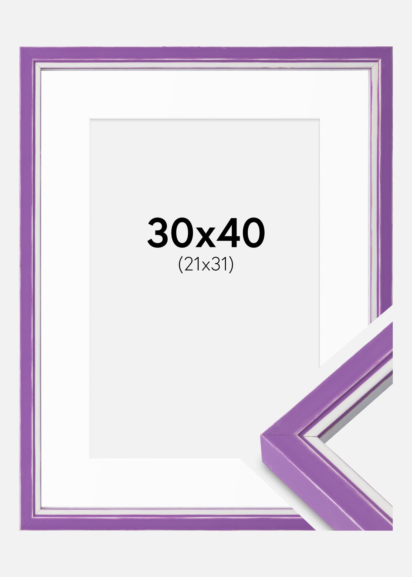 Transforme suas fotos em obras de arte com nossa elegante moldura roxa, completa com um passepartout branco. Esta moldura é perfeita para destacar suas fotos favoritas no tamanho 22x32 cm. Com uma largura de 20 mm e uma profundidade de 32 mm, a moldura oferece uma estrutura robusta e elegante que se adapta a qualquer casa.