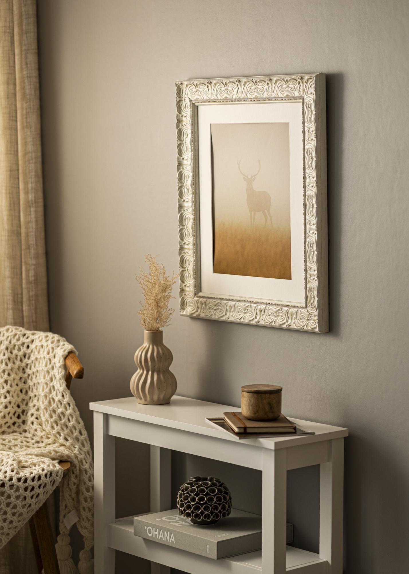 A moldura Durham Branco é uma moldura de quadro elegante e clássica que proporciona às suas imagens uma moldura atemporal. Com sua cor branco antigo e relevo decorativo, ela cria uma atmosfera sofisticada em qualquer ambiente. O acabamento sutilmente desgastado dá à moldura uma personalidade única e reforça sua expressão clássica, tornando-a uma escolha perfeita tanto para interiores modernos quanto tradicionais.