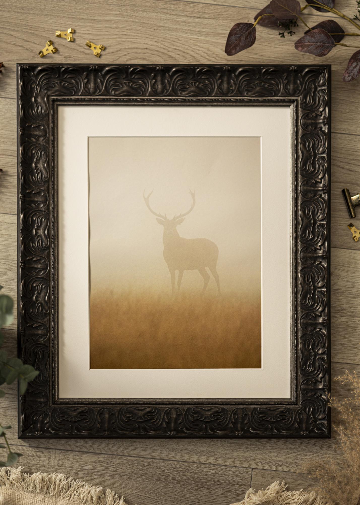 Moldura Durham Preto é uma moldura elegante e estilosa que dá às suas fotos uma estrutura clássica e rústica. Com sua cor marrom escuro antigo e relevo decorativo, cria um acabamento envelhecido que realça a sensação de intemporalidade no seu lar. Esta moldura é perfeita para quem deseja dar uma dimensão extra de profundidade e caráter às suas obras de arte ou fotografias.