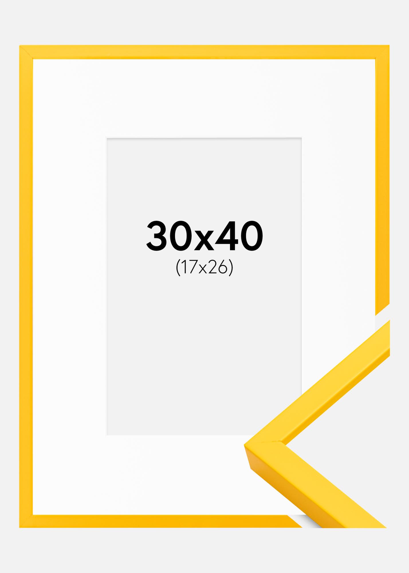 Moldura E-Line Amarelo 30x40 cm - Passe-partout Branco 18x27 cm