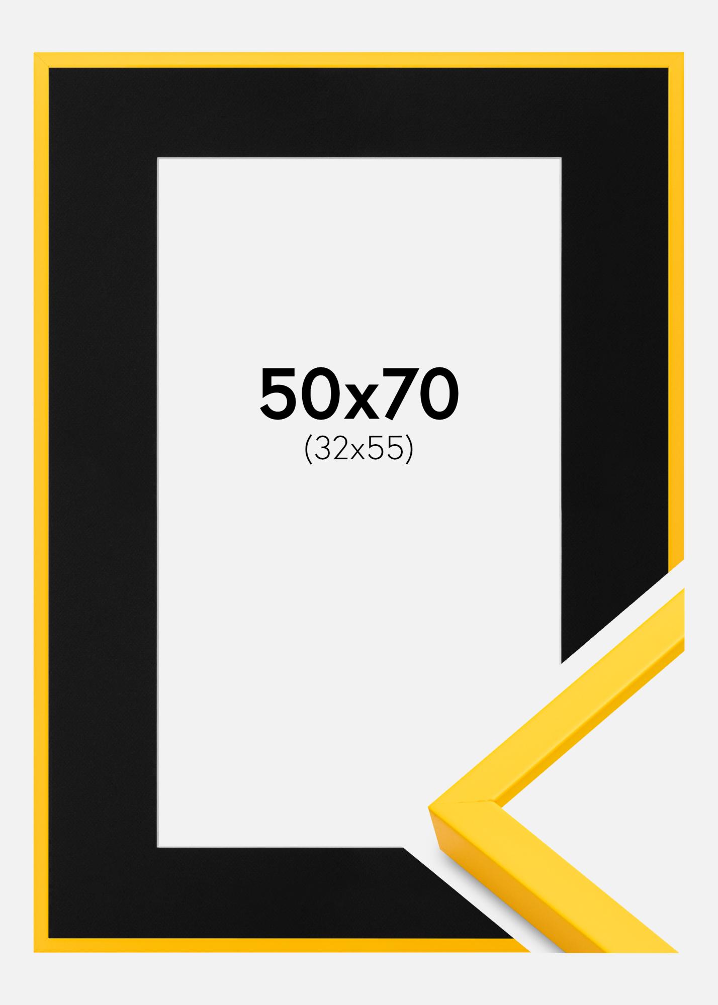 Moldura E-Line Amarelo 50x70 cm - Passe-partout Preto 33x56 cm