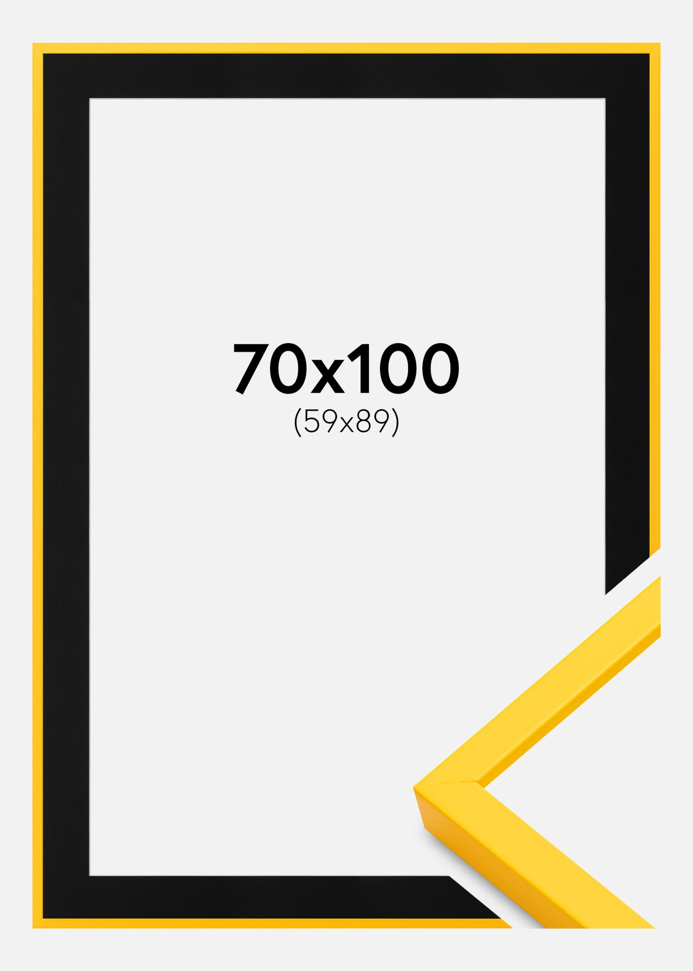 Moldura E-Line Amarelo 70x100 cm - Passe-partout Preto 60x90 cm