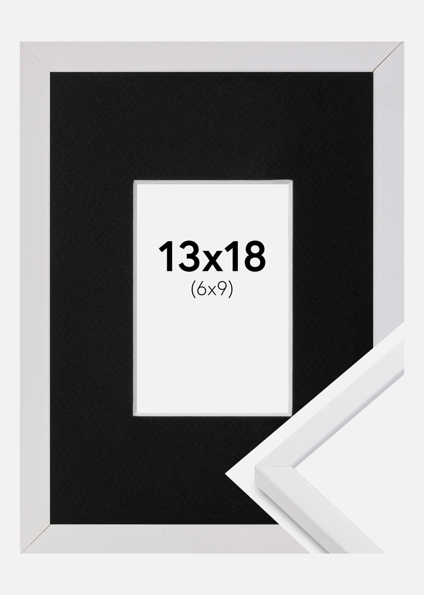 Moldura E-Line Branco 13x18 cm - Passe-partout Preto 7x10 cm
