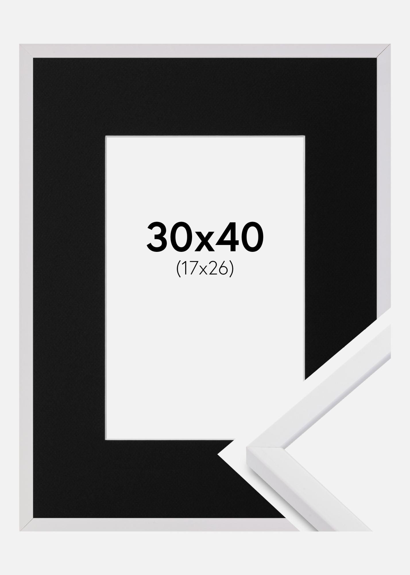 Moldura E-Line Branco 30x40 cm - Passe-partout Preto 18x27 cm