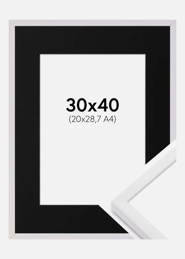 Moldura E-Line Branco 30x40 cm - Passe-partout Preto 21x29,7 cm (A4)